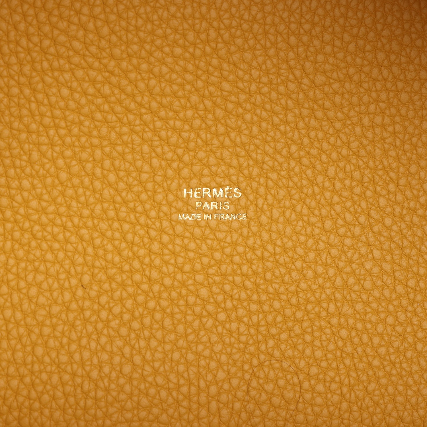 Picotin 18 Lock is in Jaune Ambre clemence leather with palladium hardware and has tonal stitching with two top handles.