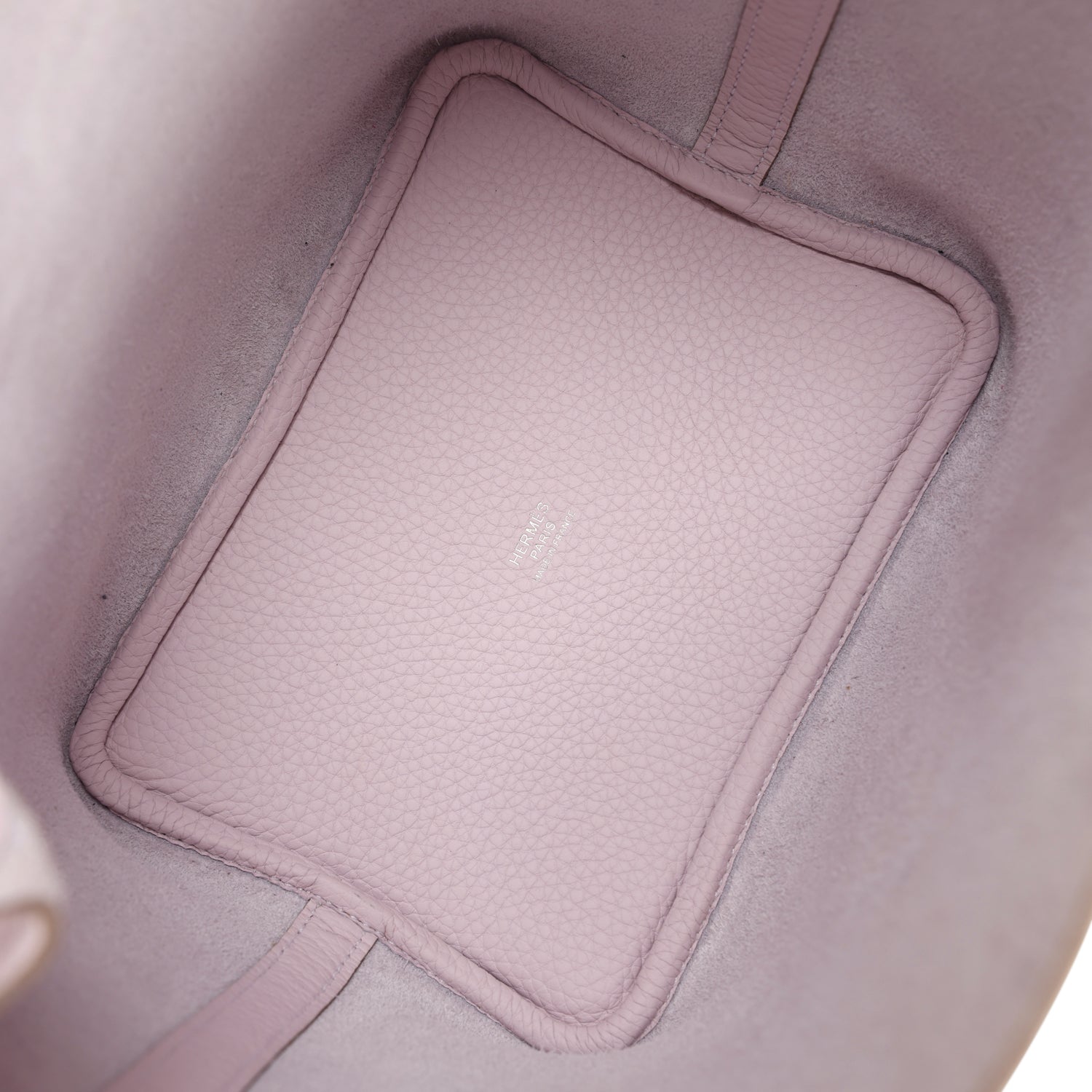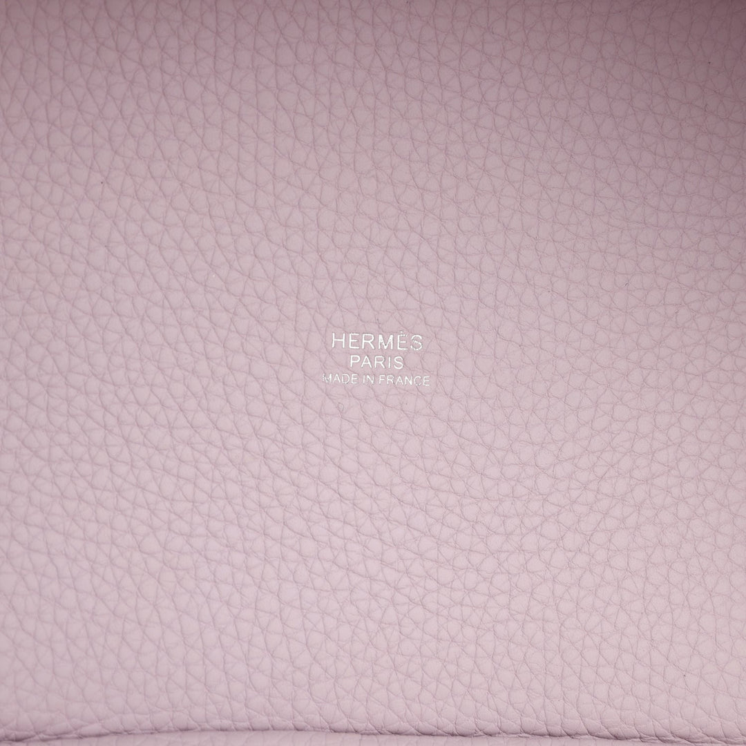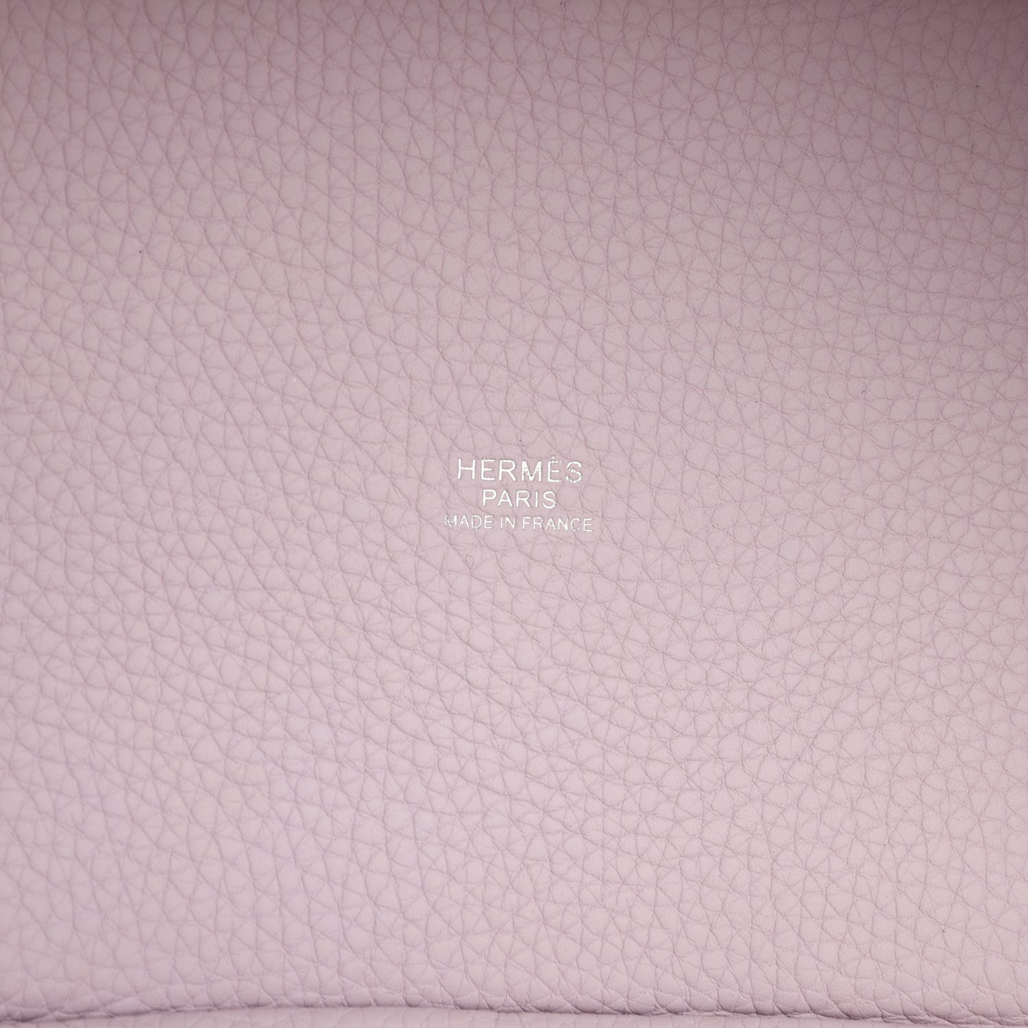 Picotin Lock is in Mauve Pale clemence leather with palladium hardware and has tonal stitching with two top handles.