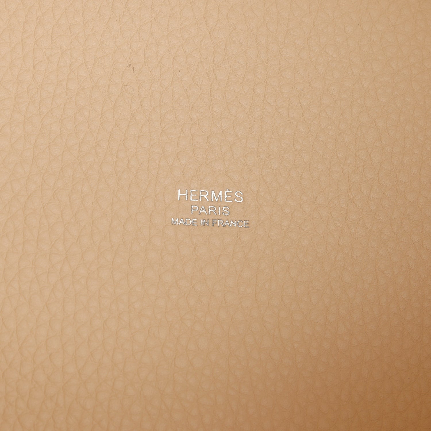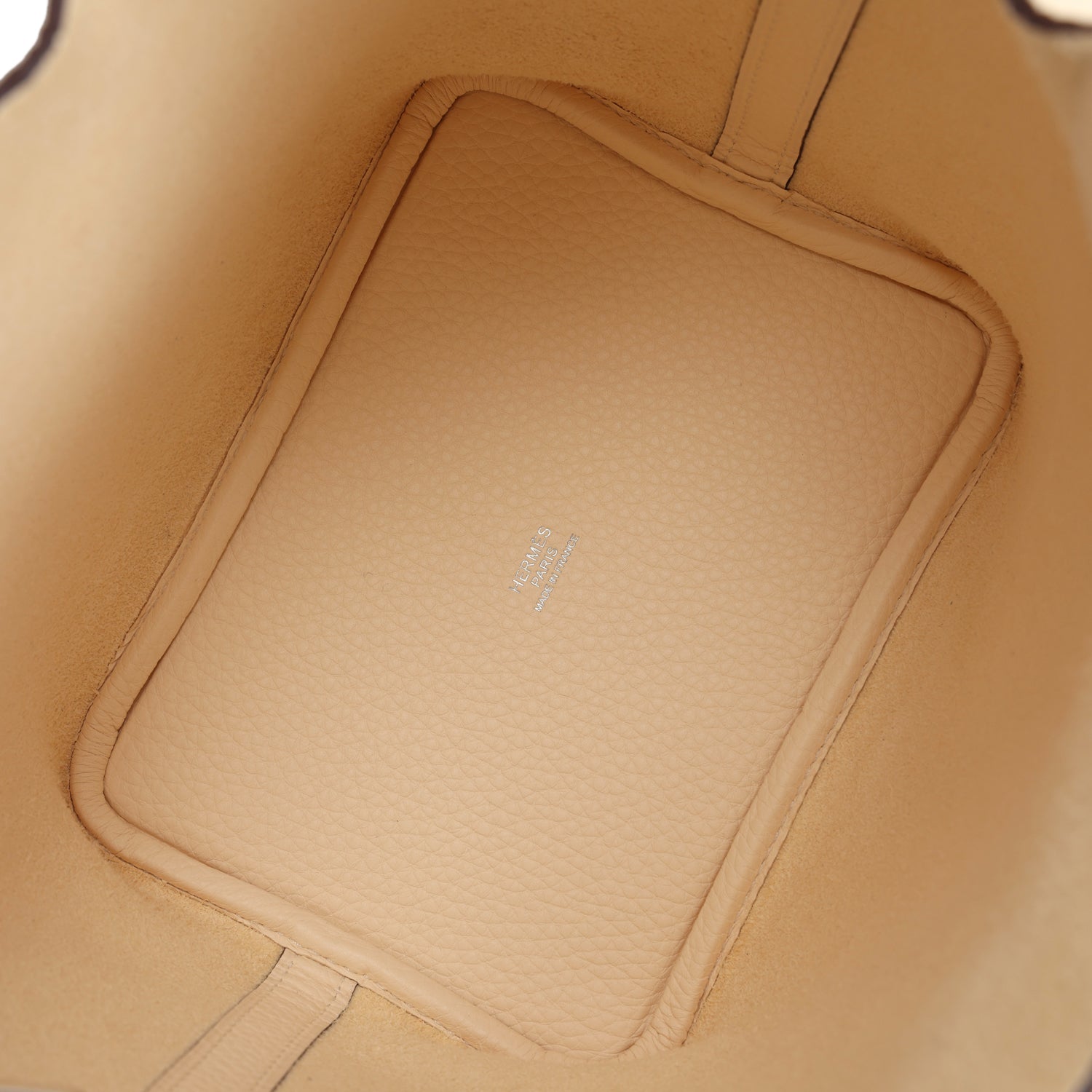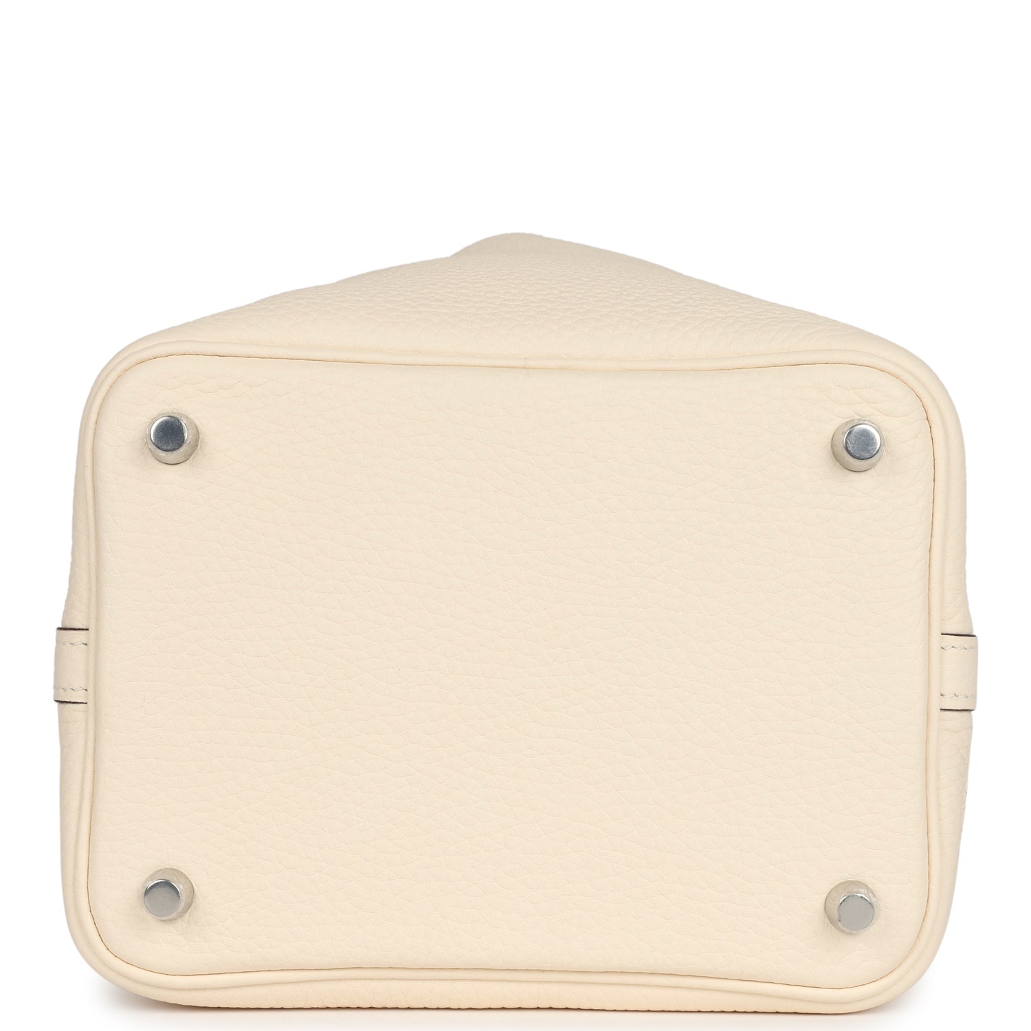 Picotin Lock is in Nata clemence leather with palladium hardware and has tonal stitching with two top handles.