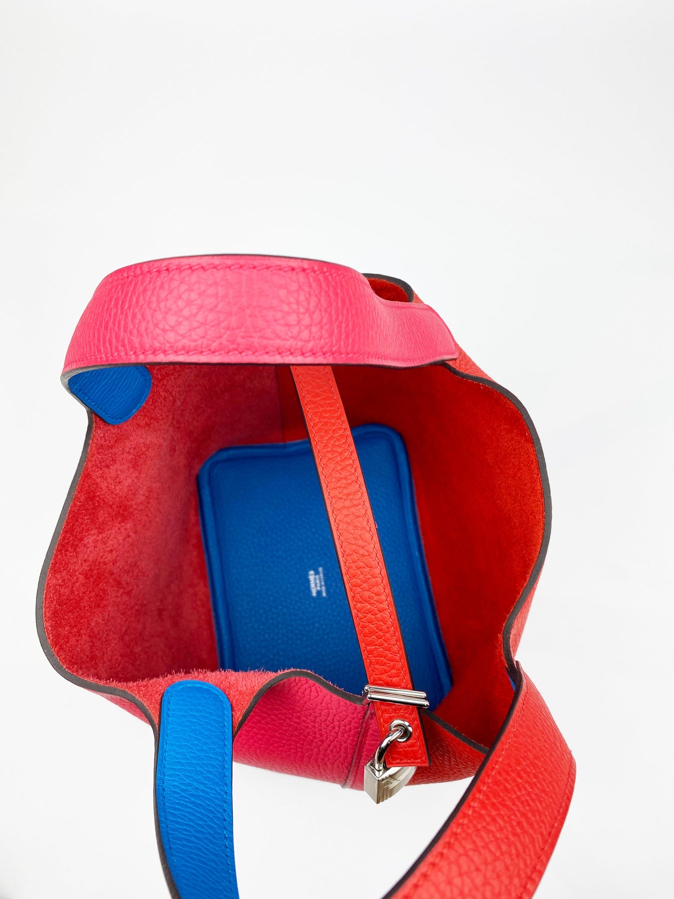 Description : Stunning unique shades of pink, red and blue in this Picotin Hermes bag; in pristine condition.
