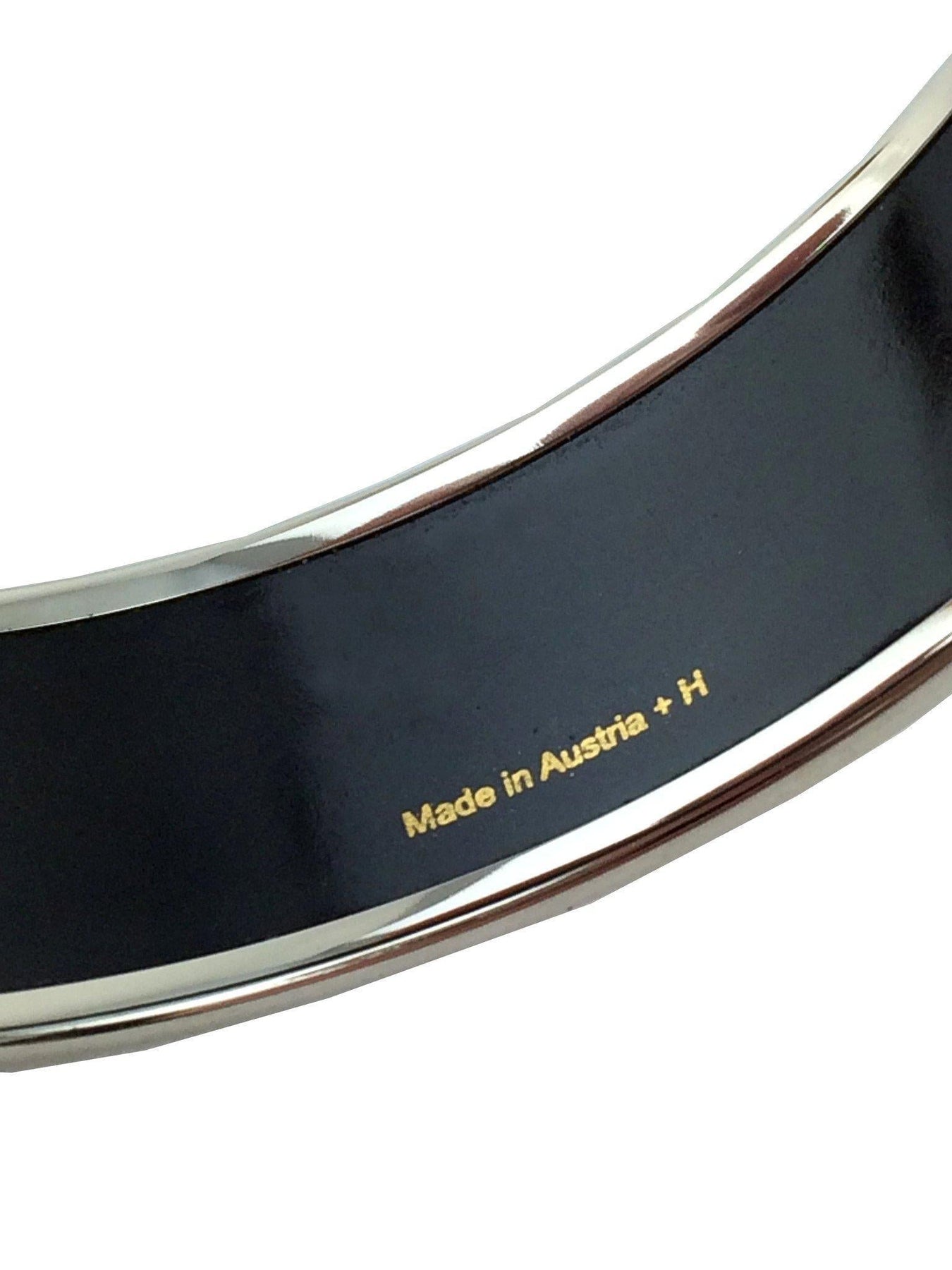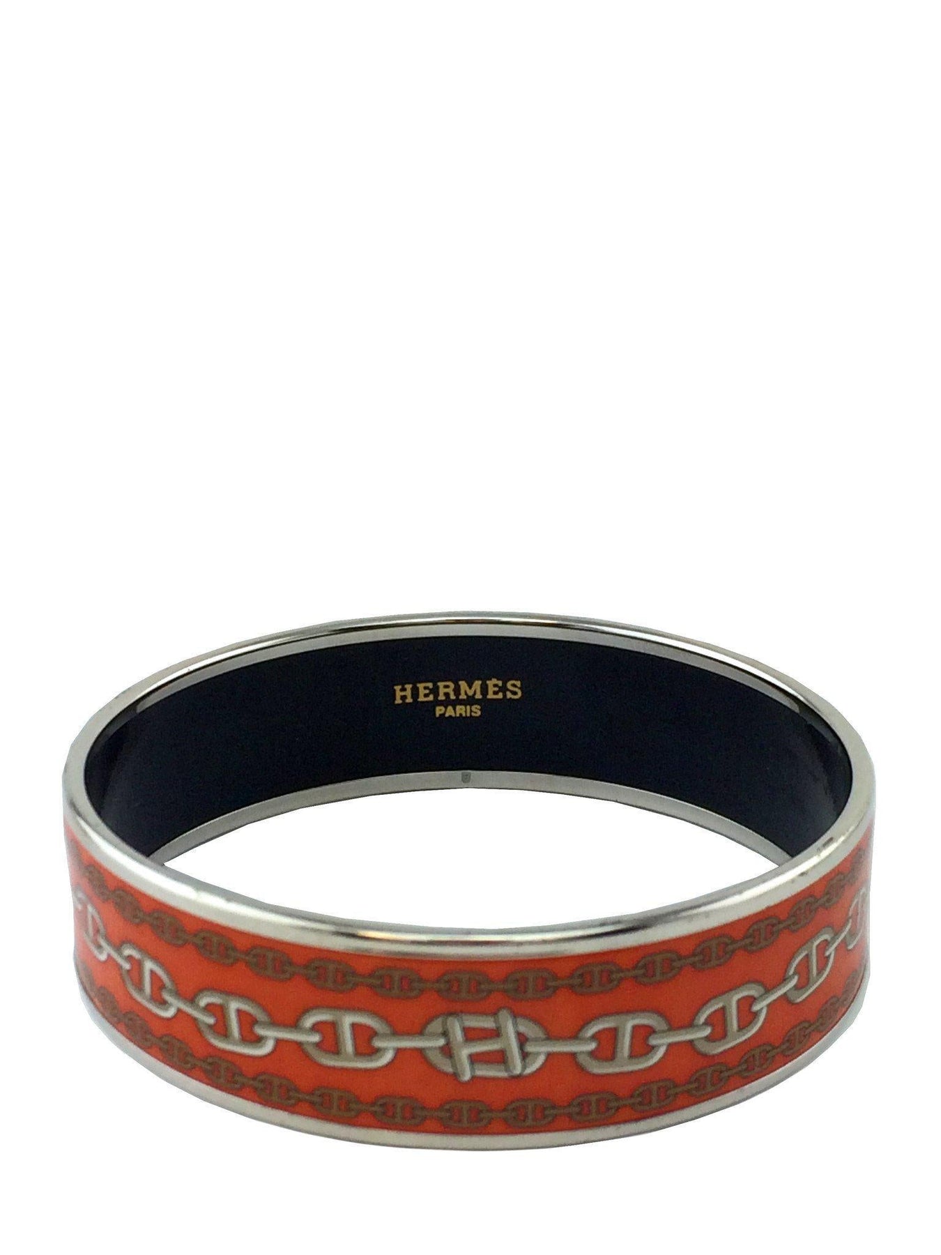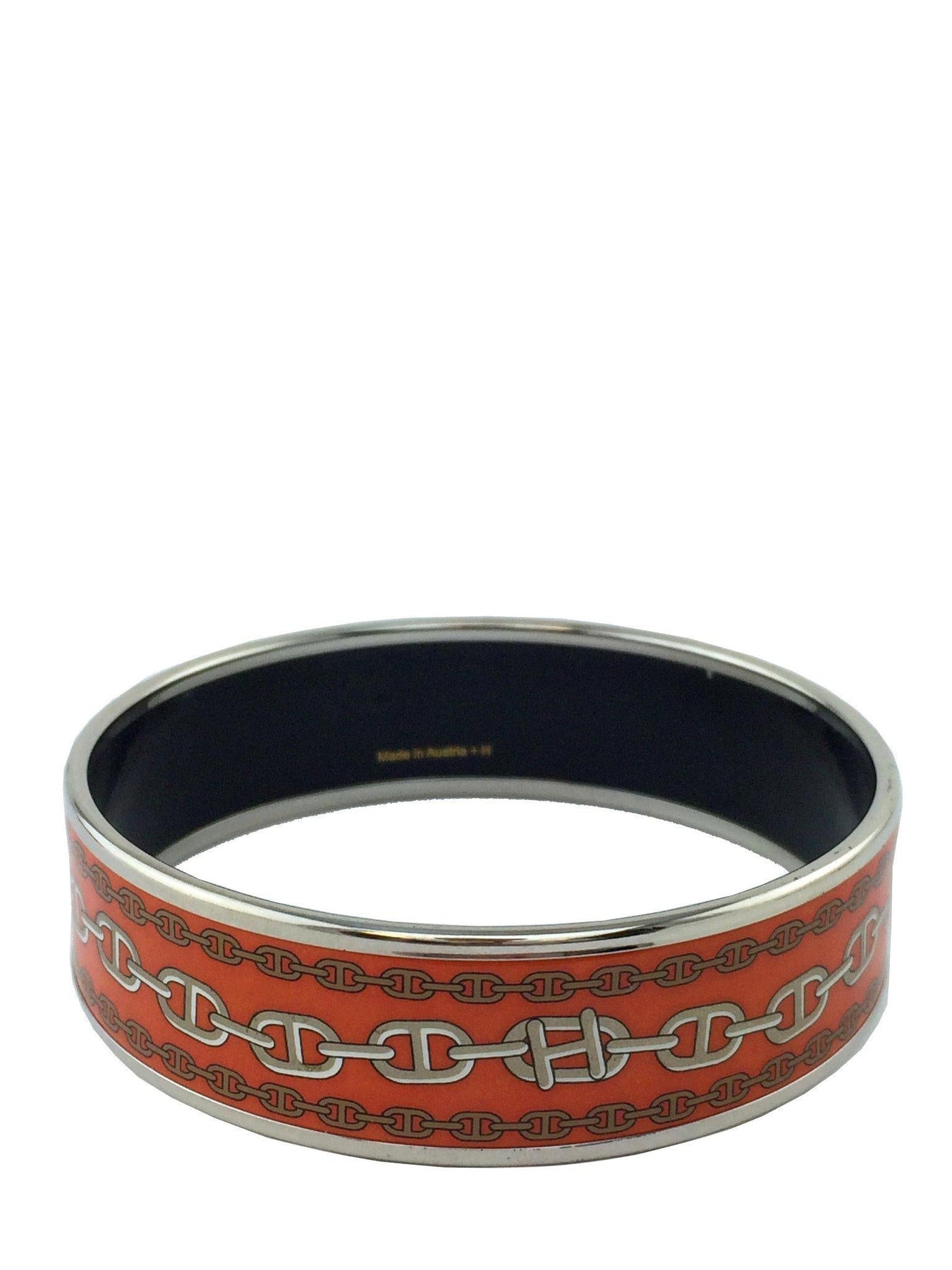 Hermes printed enamel d'Ancre Chain Link wide bracelet 65 featuring a signature chain d'Ancre graphic and an exterior silver-tone rim.