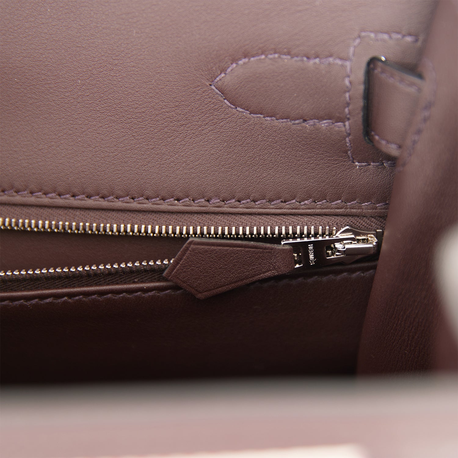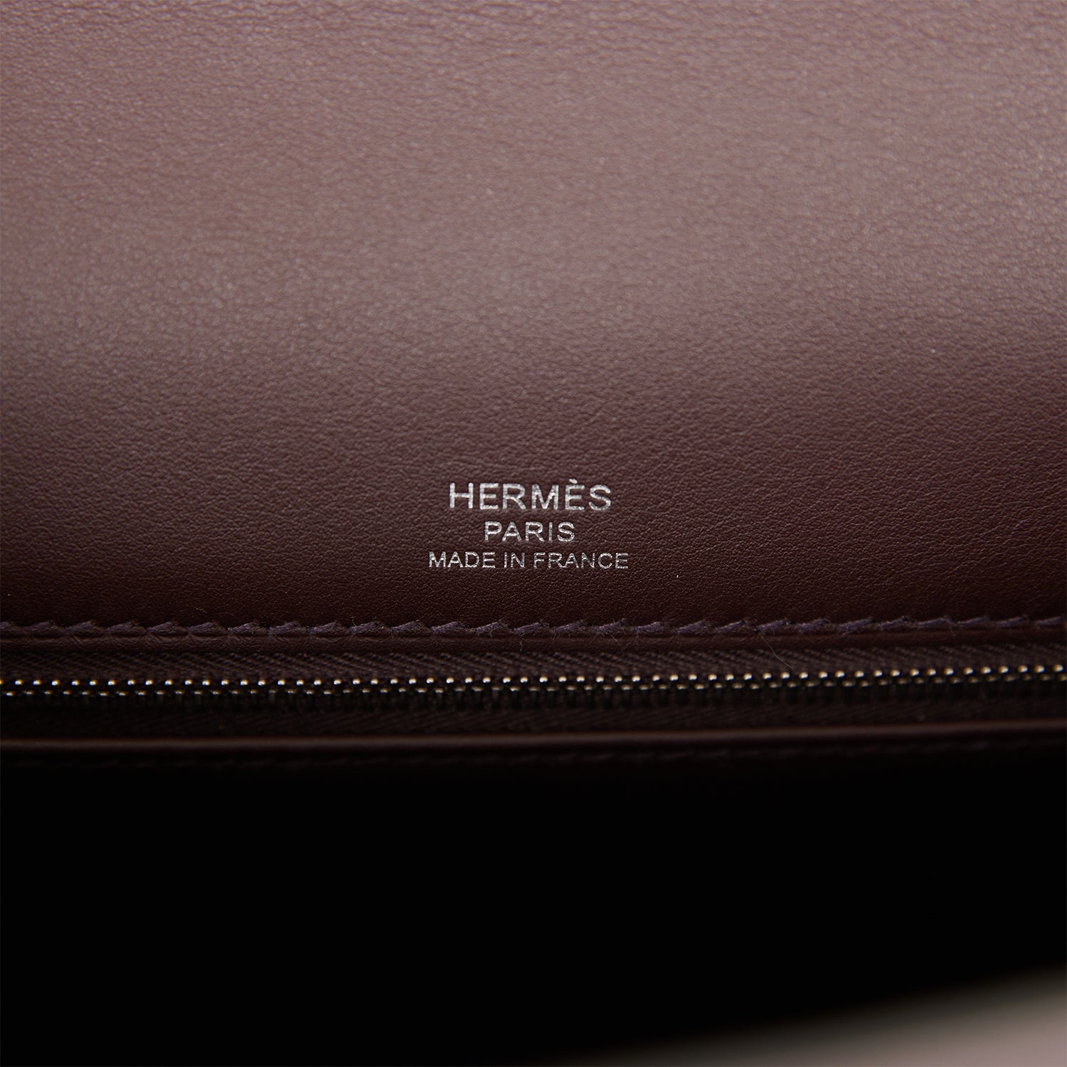 The interior is lined with Rouge Sellier swift and has one zip pocket with an Hermes engraved pull and two open pockets on the opposite side.