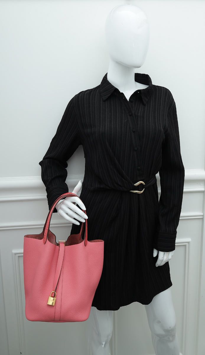 Hermes Rose Azalee Crocodile Touch Picotin 22 Bag