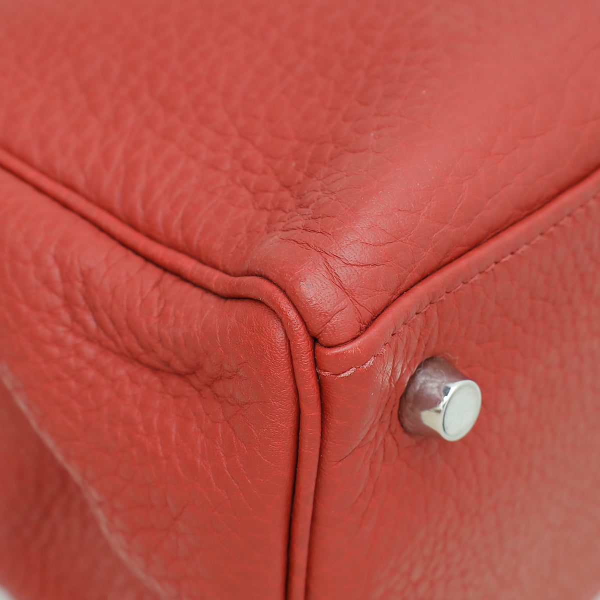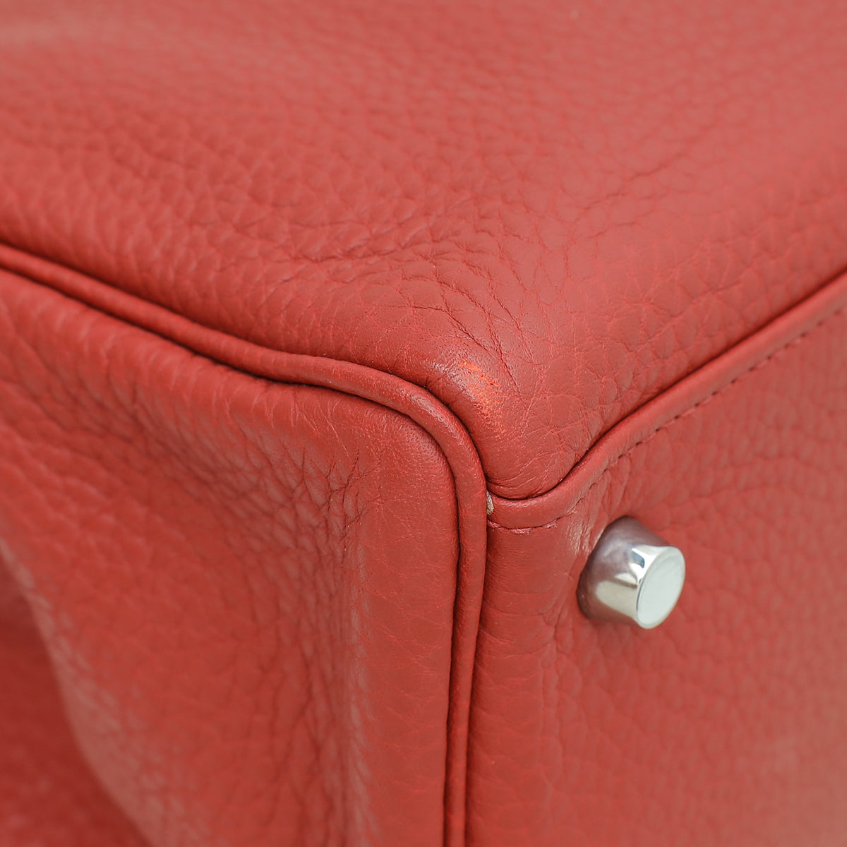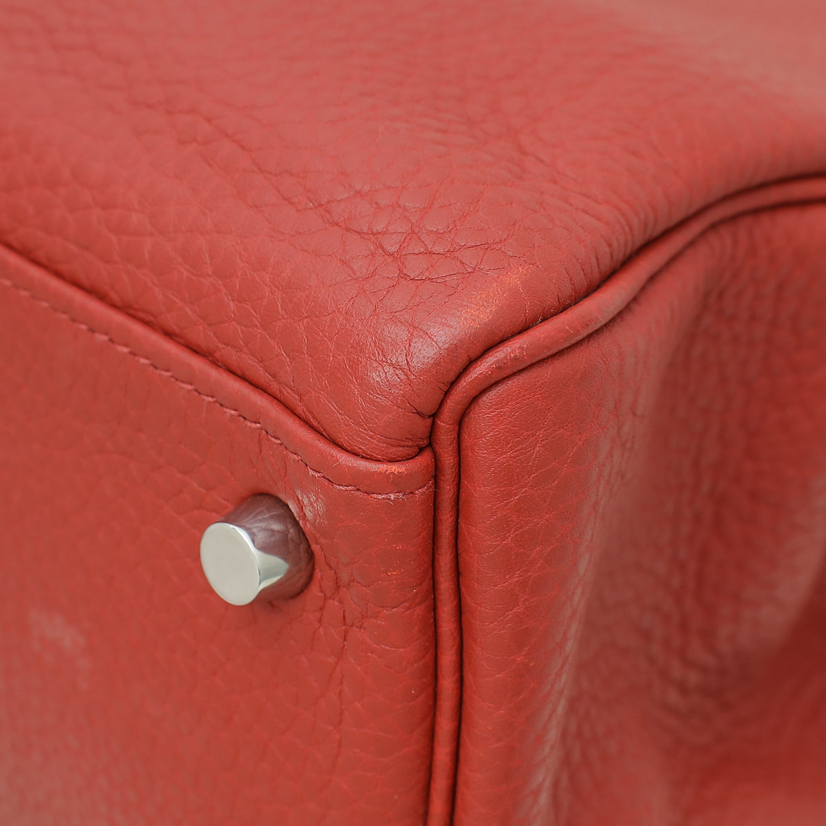 Exterior: good condition, with scratches on the hardware, corners, stain on leather and showing normal signs of use.