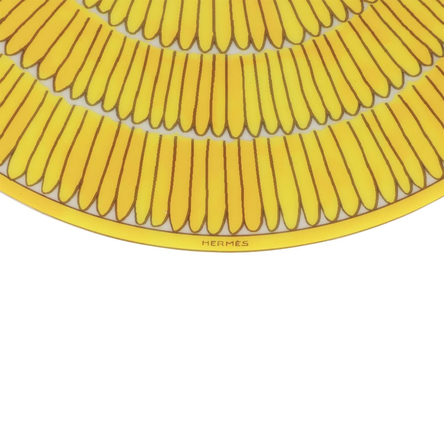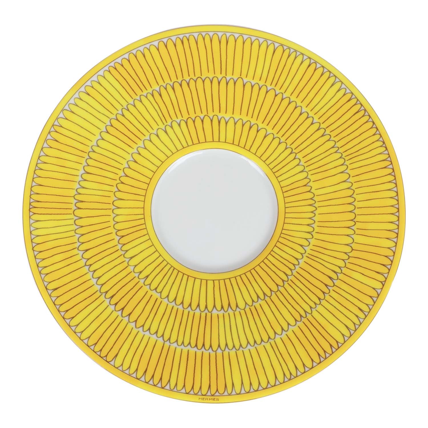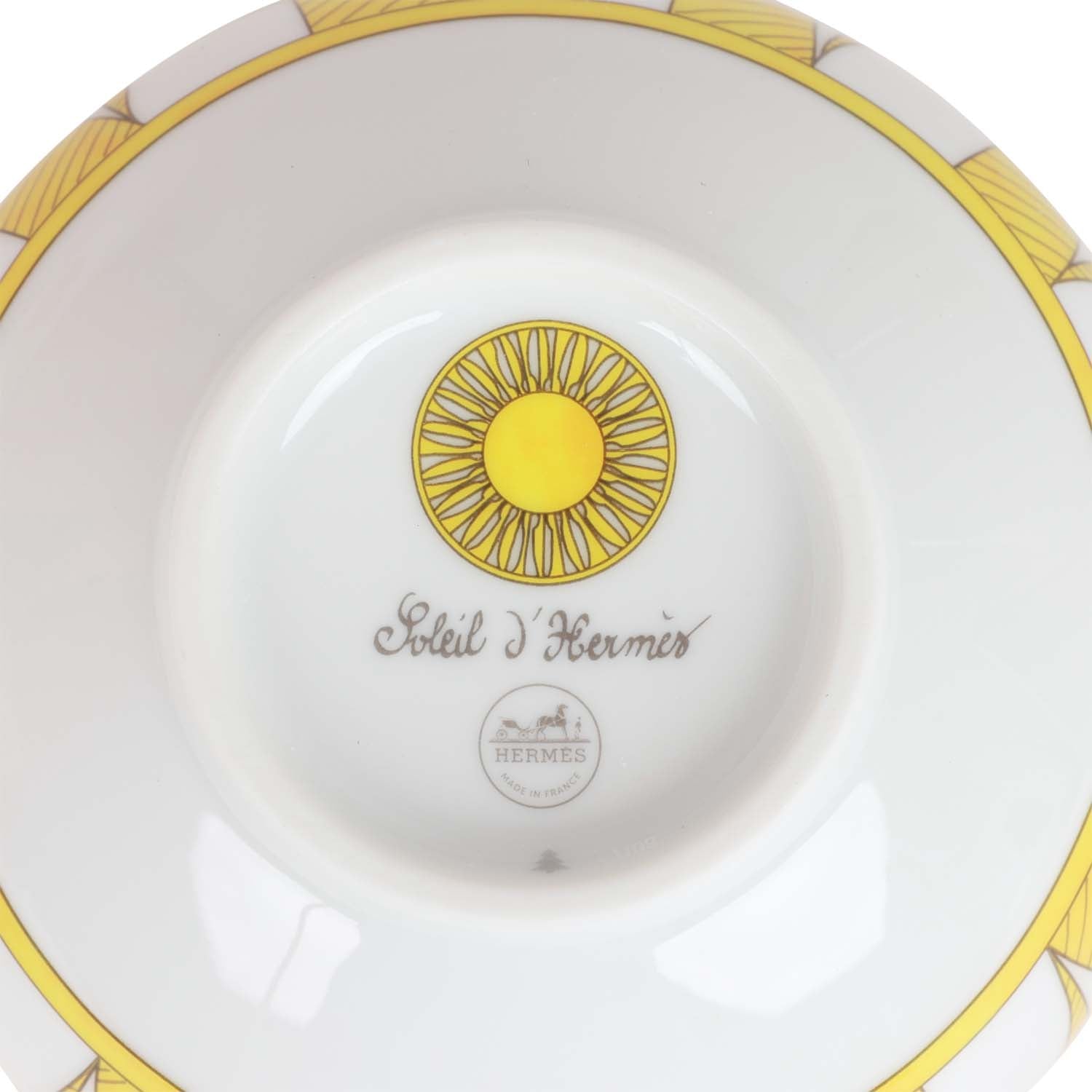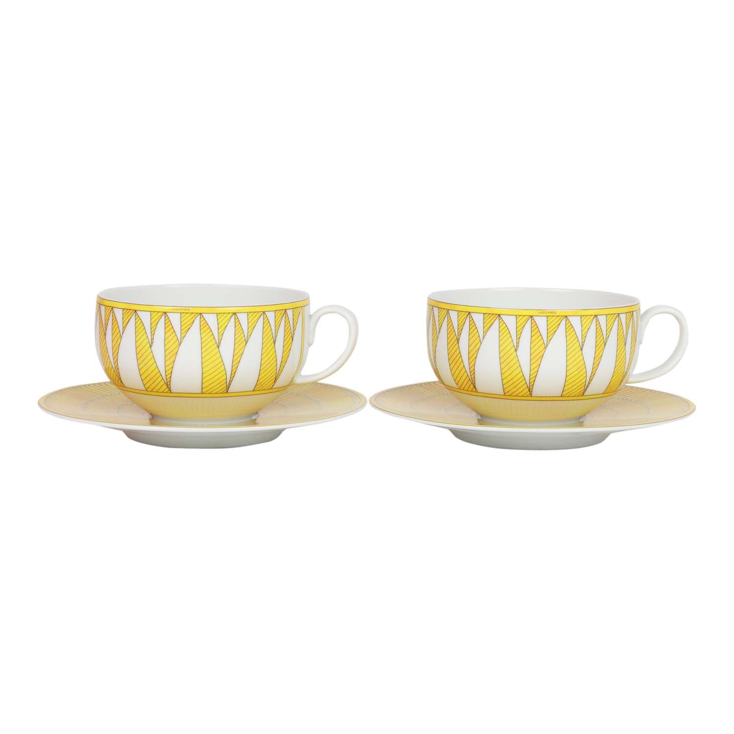 Two Hermes "Soleil D'Hermes" breakfast cups and two matching saucers in yellow and white porcelain.
