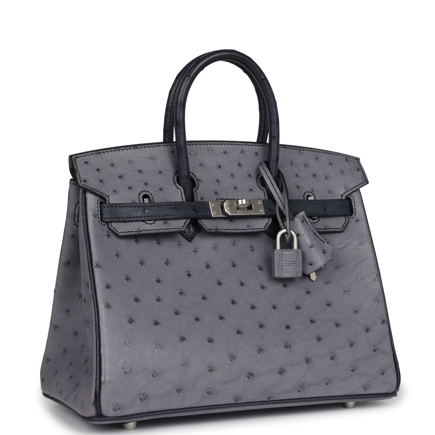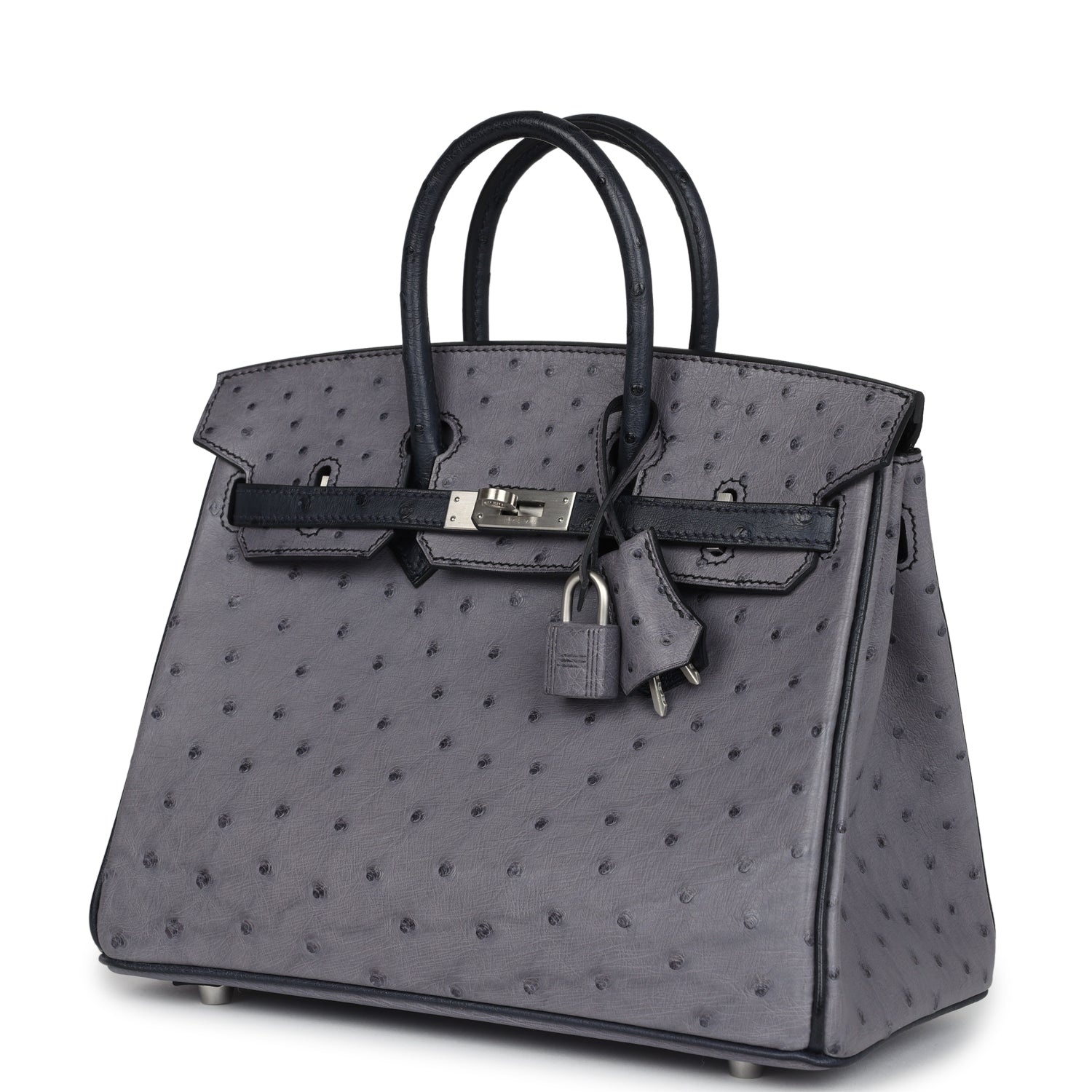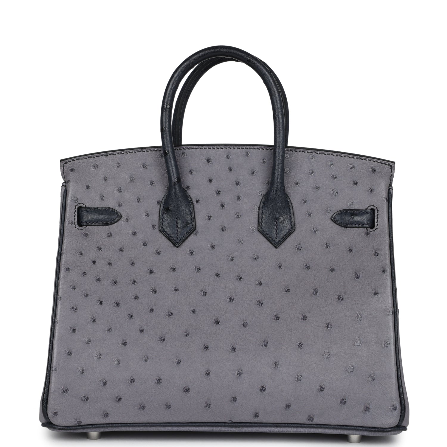 Hermes Special Order (HSS) Birkin 25 Gris Agate and Bleu Indigo Ostrich Brushed Palladium Hardware