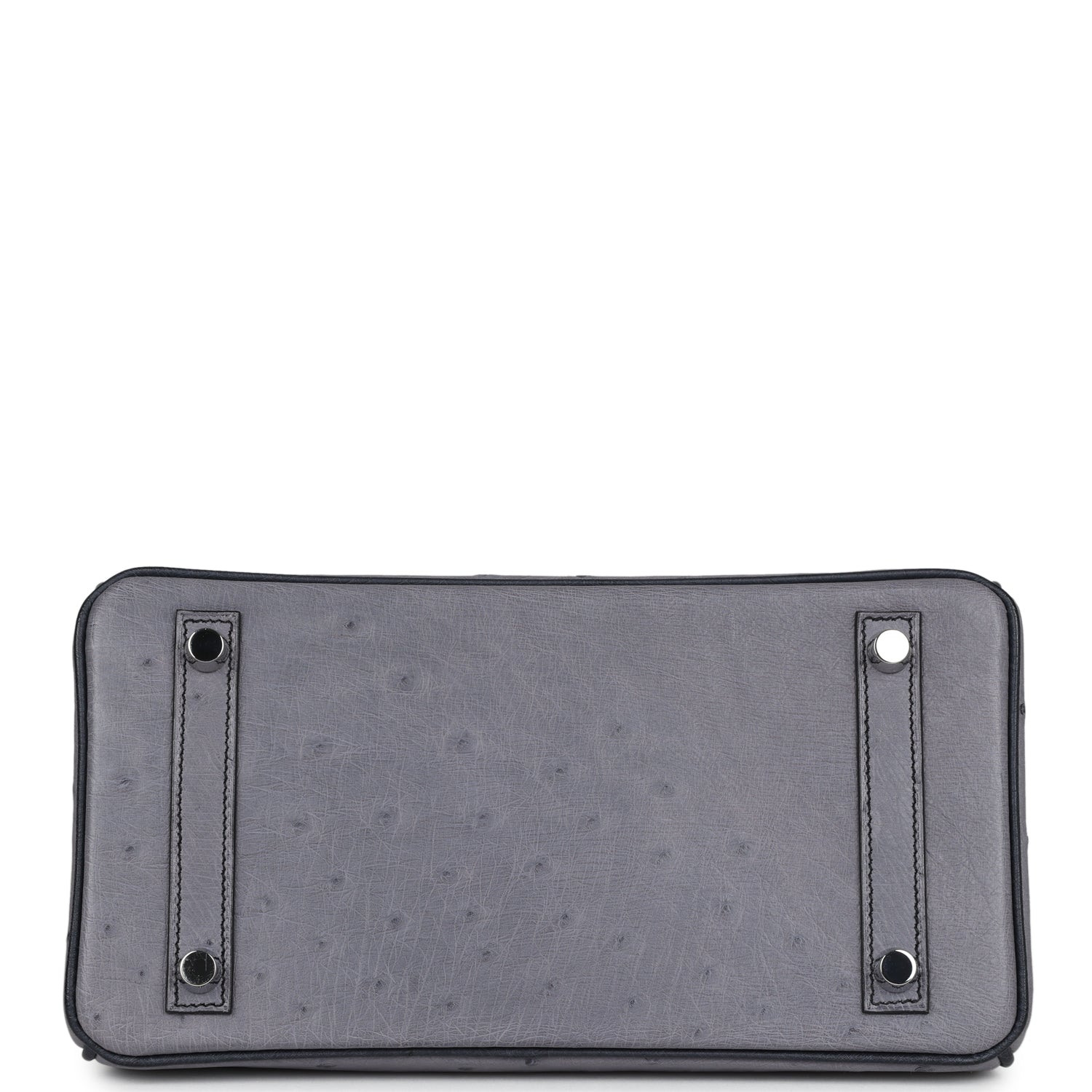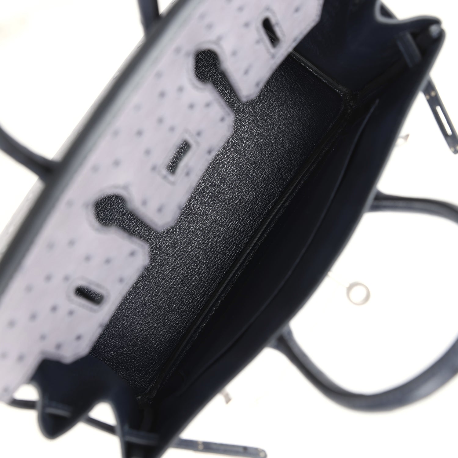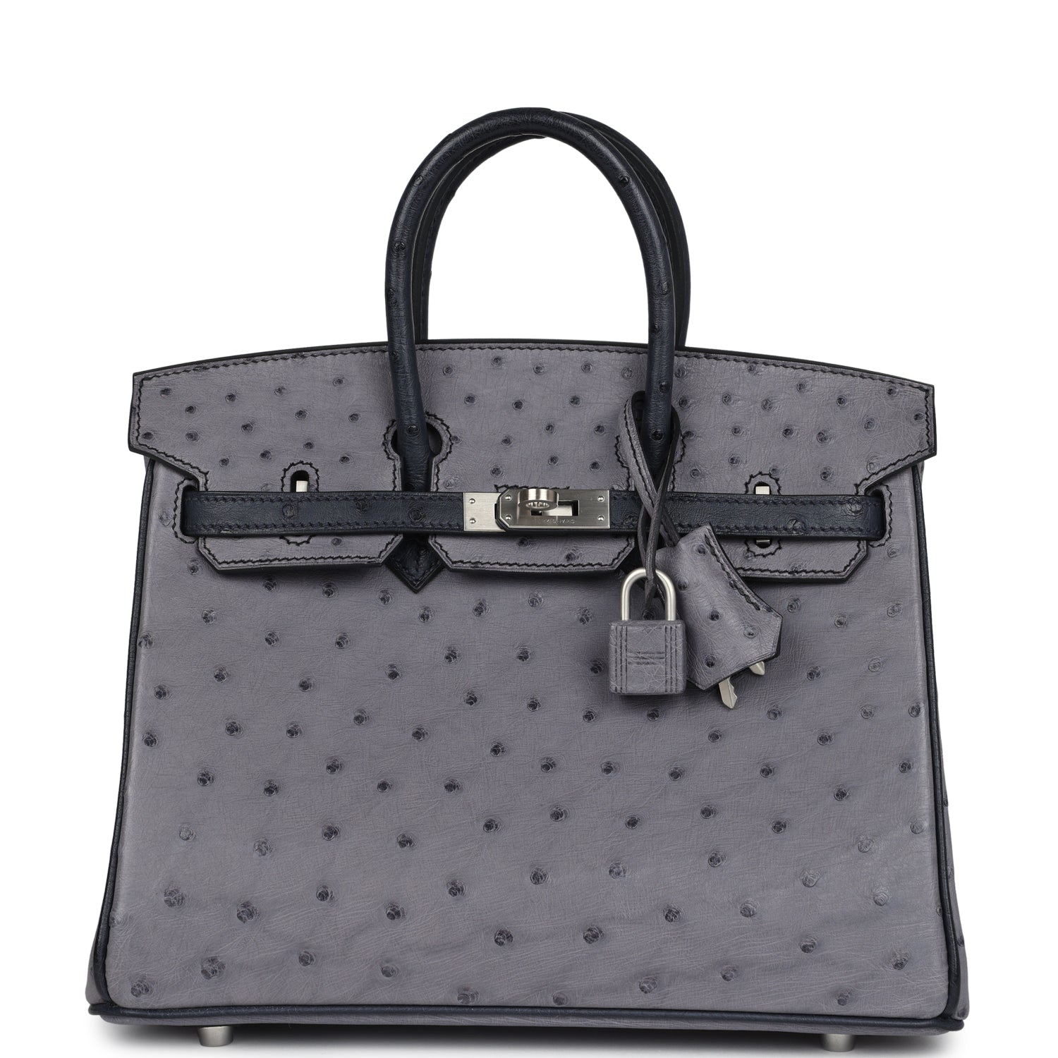 Hermes Special Order (HSS) Birkin 25 Gris Agate and Bleu Indigo Ostrich Brushed Palladium Hardware
