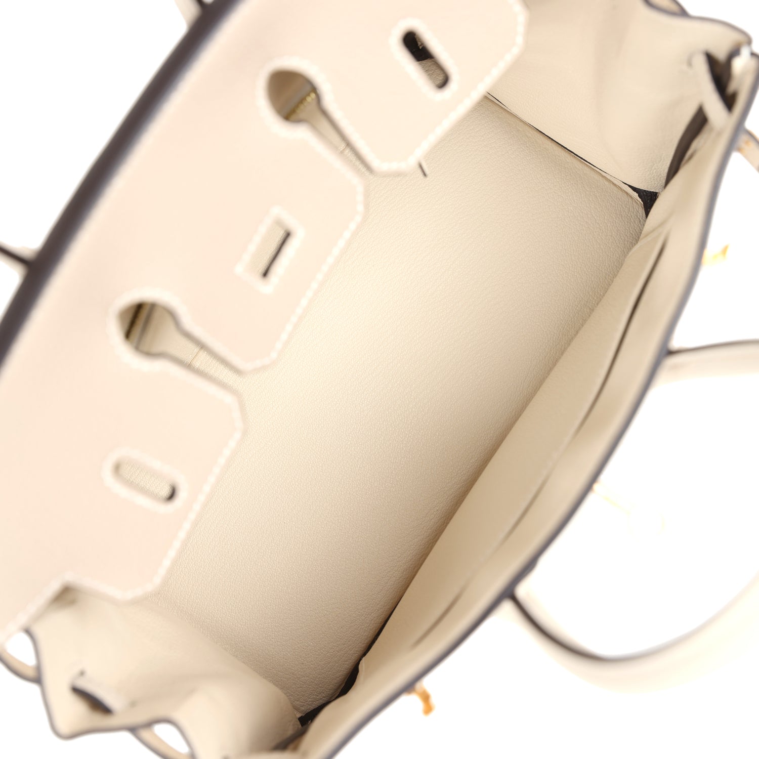 The interior is lined with Craie chevre and has one zip pocket with an Hermes engraved zipper pull and an open pocket on the opposite side.
