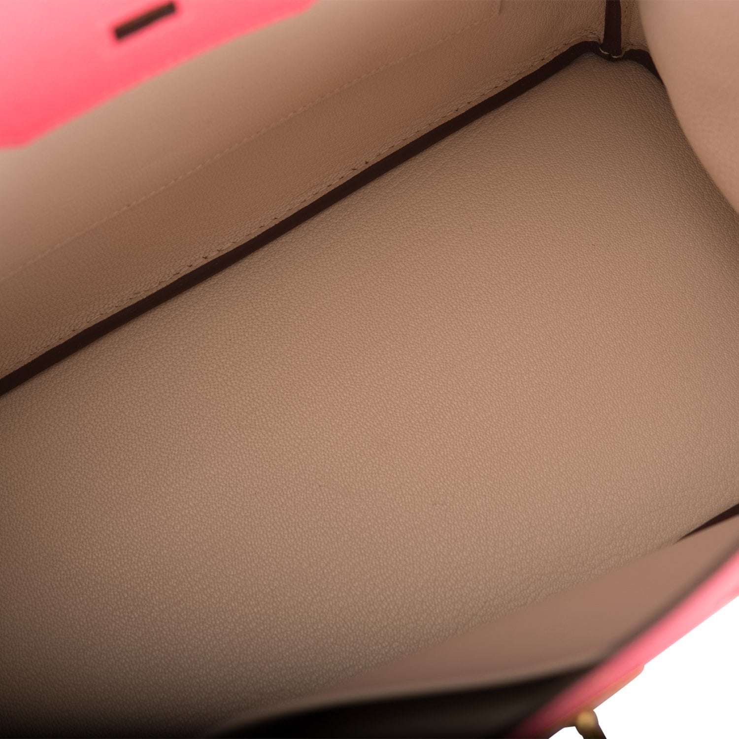 The interior is lined with Craie chevre and has one zip pocket with an Hermes engraved zipper pull and an open pocket on the opposite side.