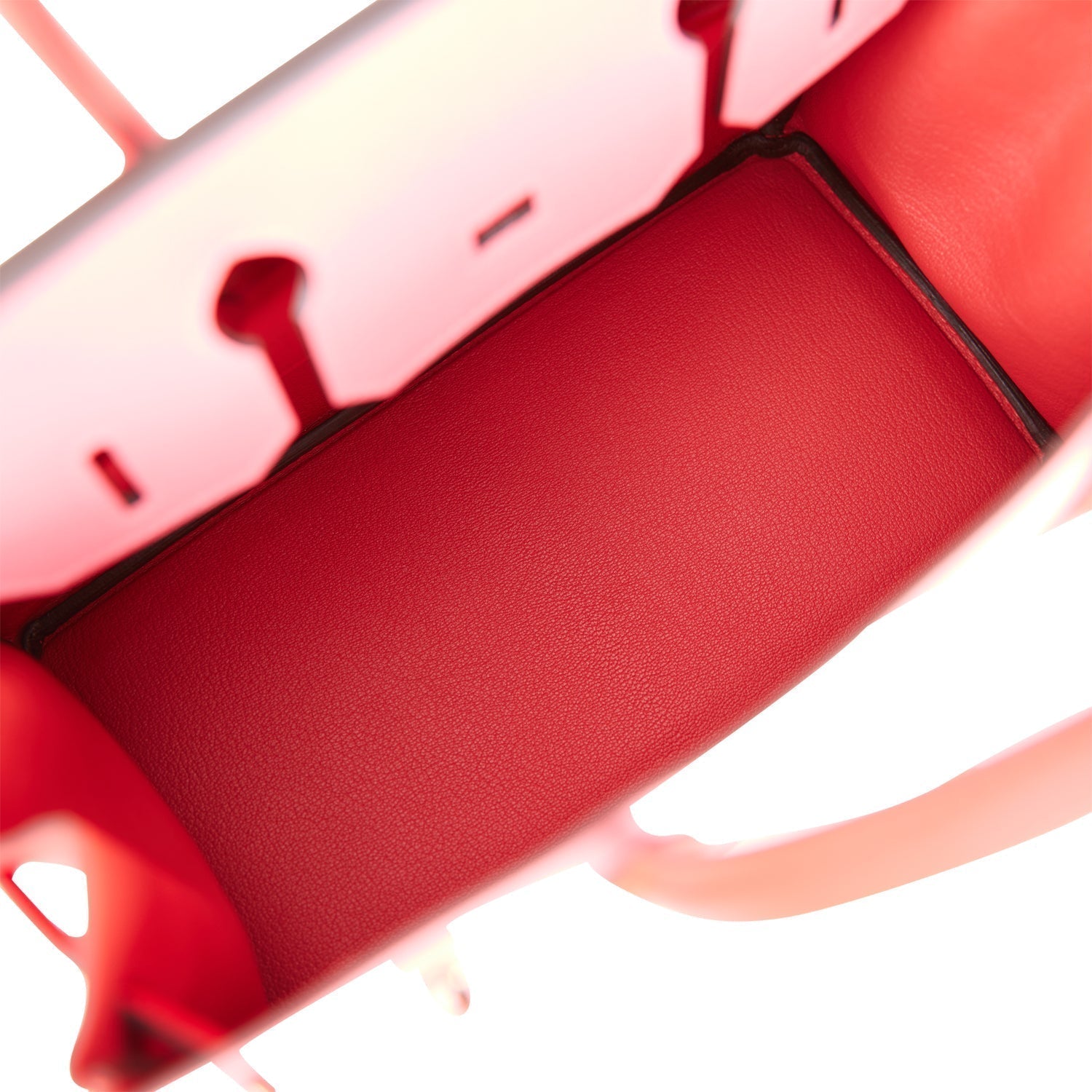 This Special Order Birkin is in Rose Azalee and Rouge de Coeur epsom leather with permabrass hardware and has tonal stitching, front flap, two straps with center toggle closure, clochette with lock and two keys, and double rolled handles.