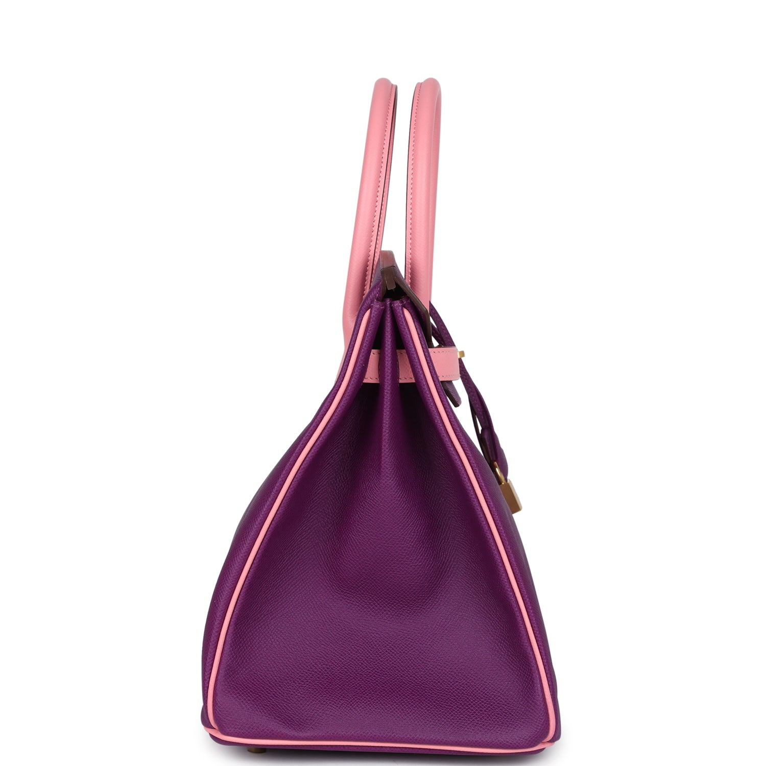 This Special Order Birkin is in Rose Confetti and Anemone epsom leather with gold hardware and has tonal stitching, front flap, two straps with center toggle closure, clochette with lock and two keys, and double rolled handles.