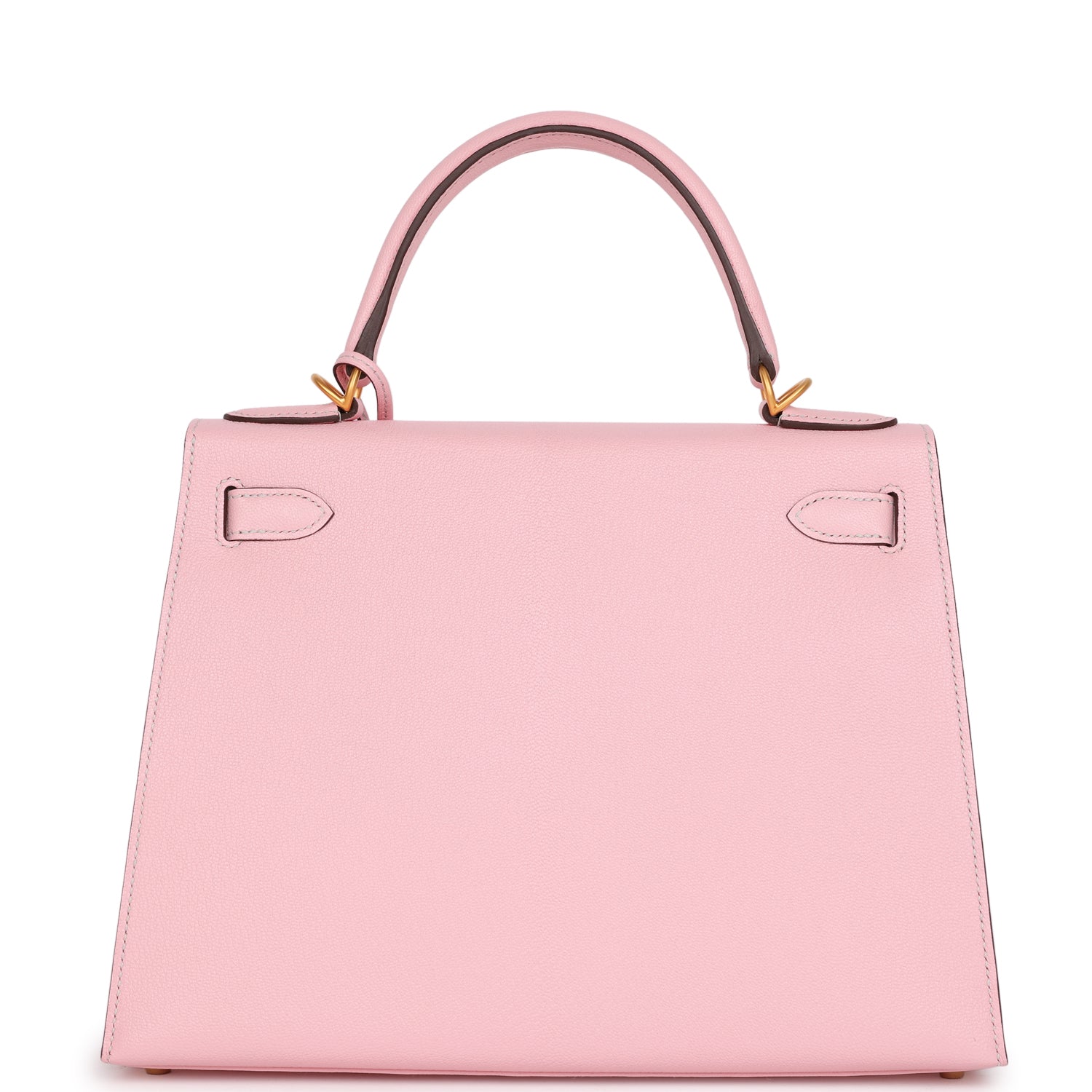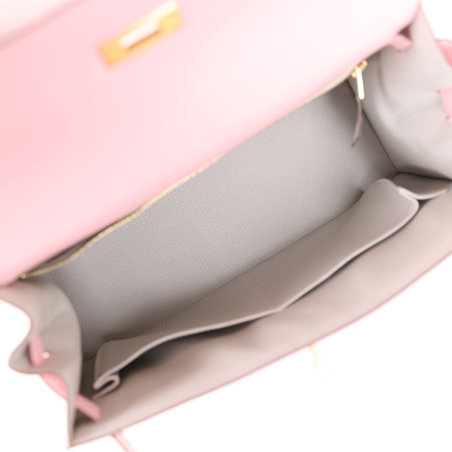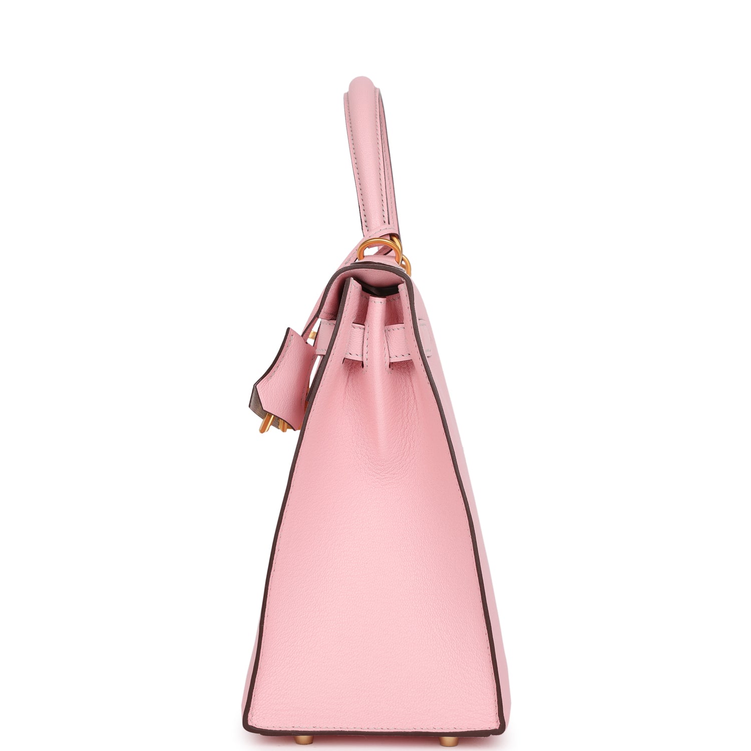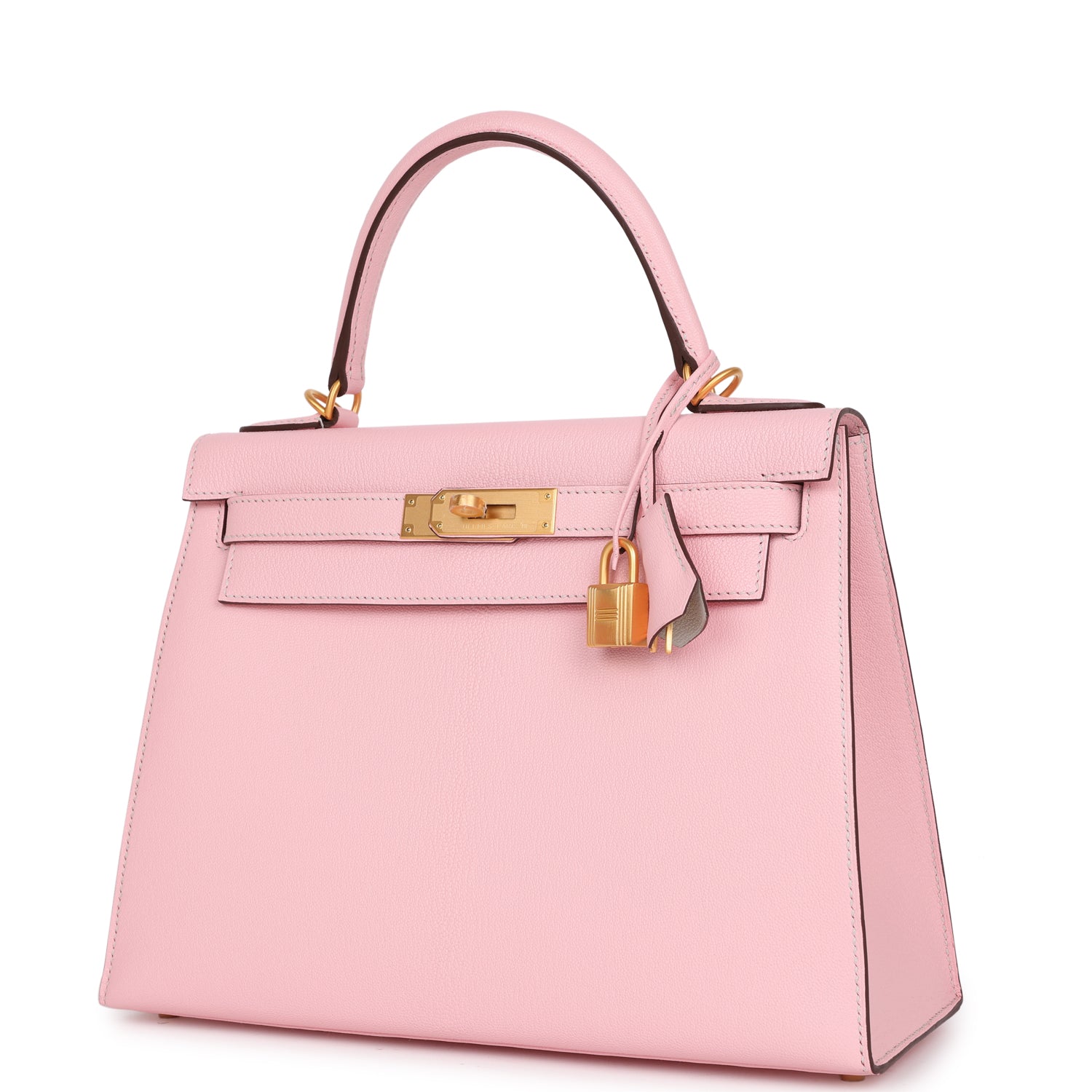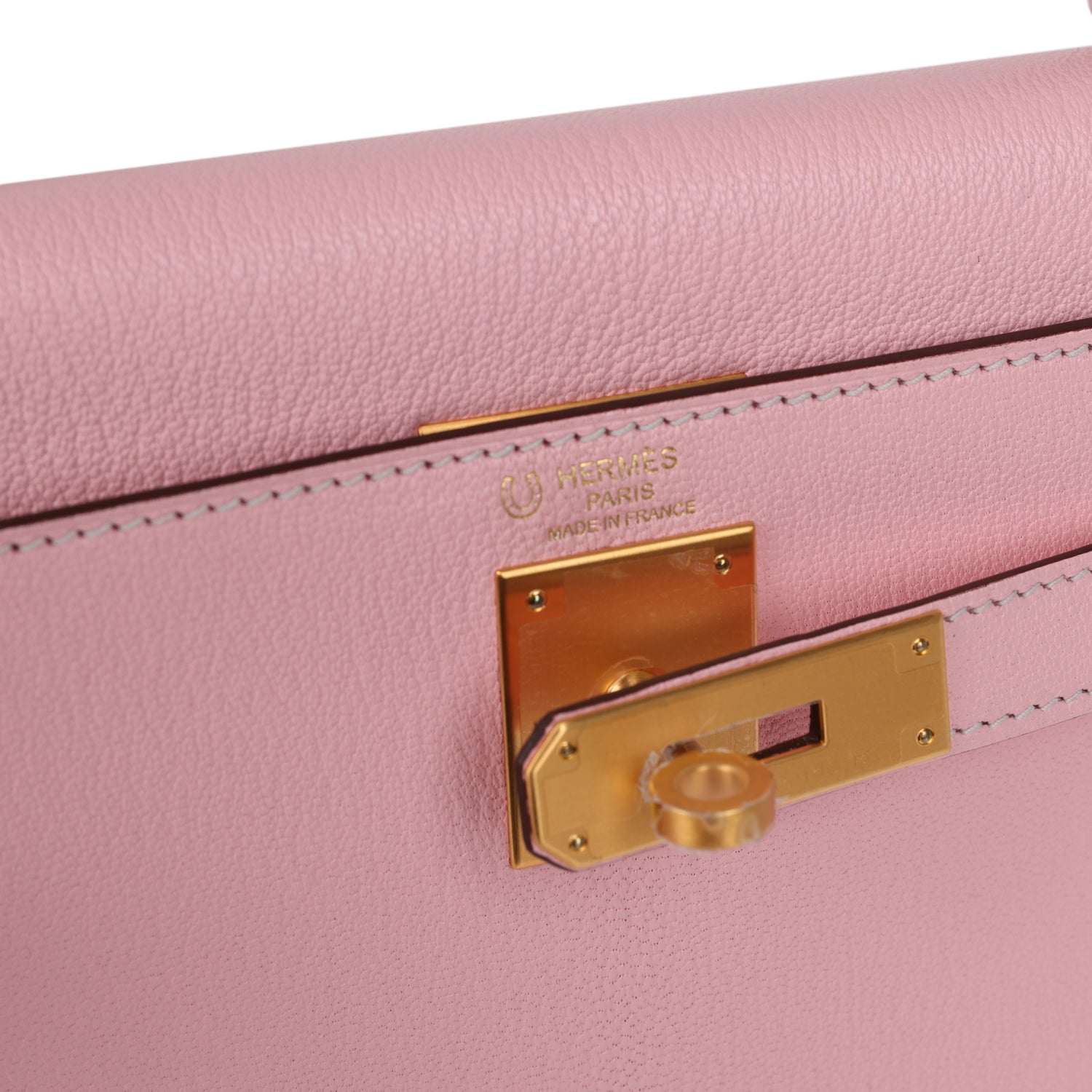 Hermes Special Order (HSS) Kelly Sellier 28 Rose Sakura Verso Chevre Brushed Gold Hardware