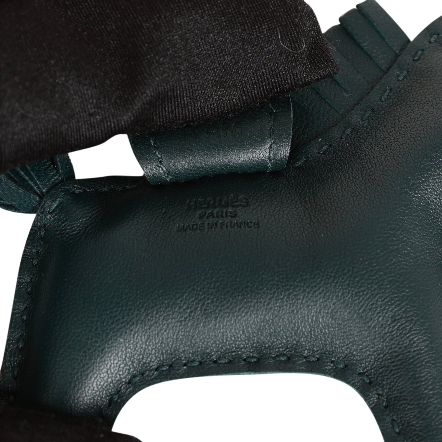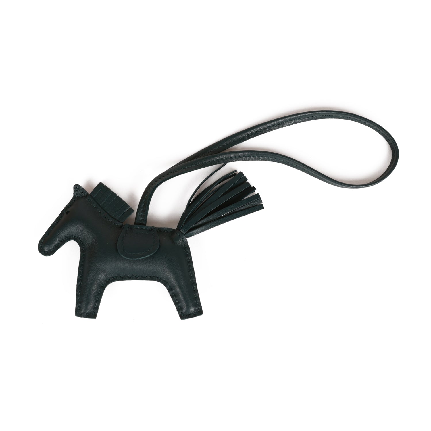 This Grigri Rodeo bag charm is in Vert Cypress Milo lambskin leather and matching mane, tail, saddle and holder.