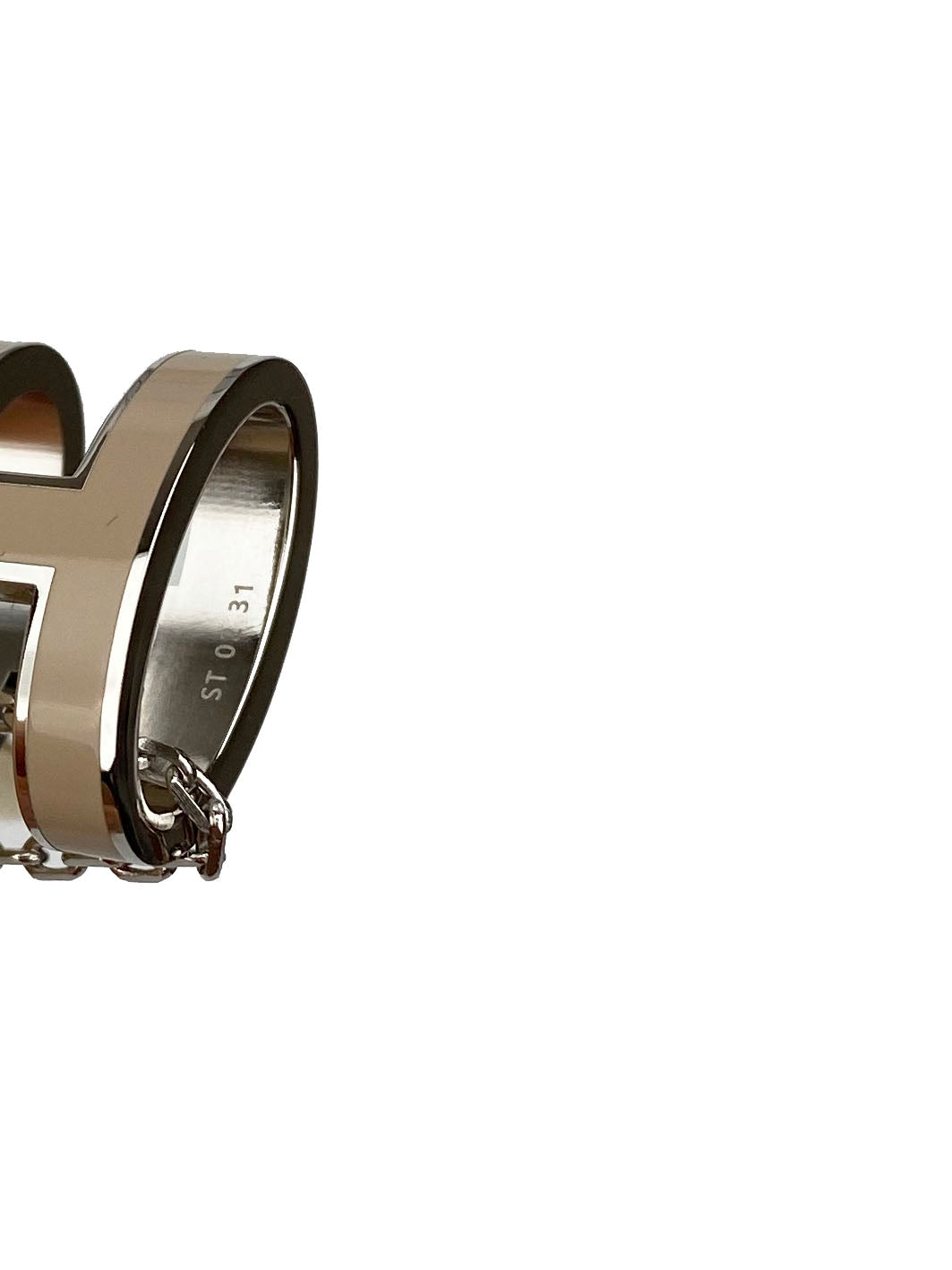 Description : The perfect subtle touch of luxe for your everyday look: this Hermes Pop H necklace outlined in silver. In pristine condition; brand new.