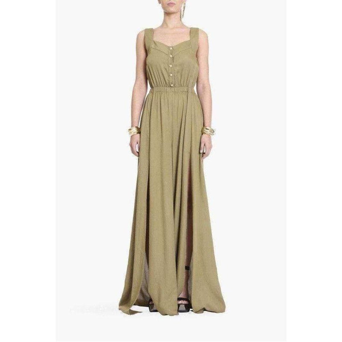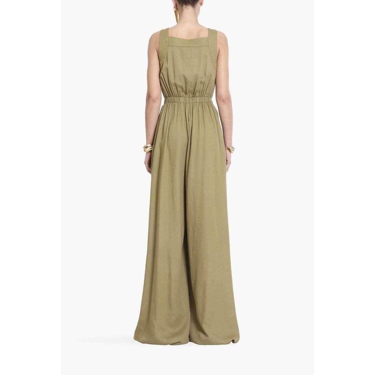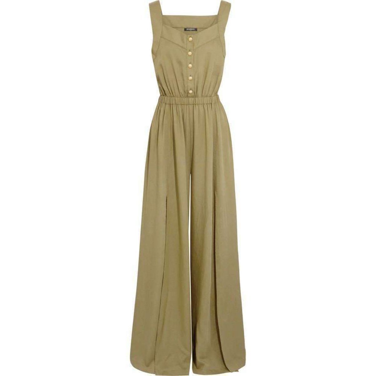 Lightweight khaki military motif jumpsuit