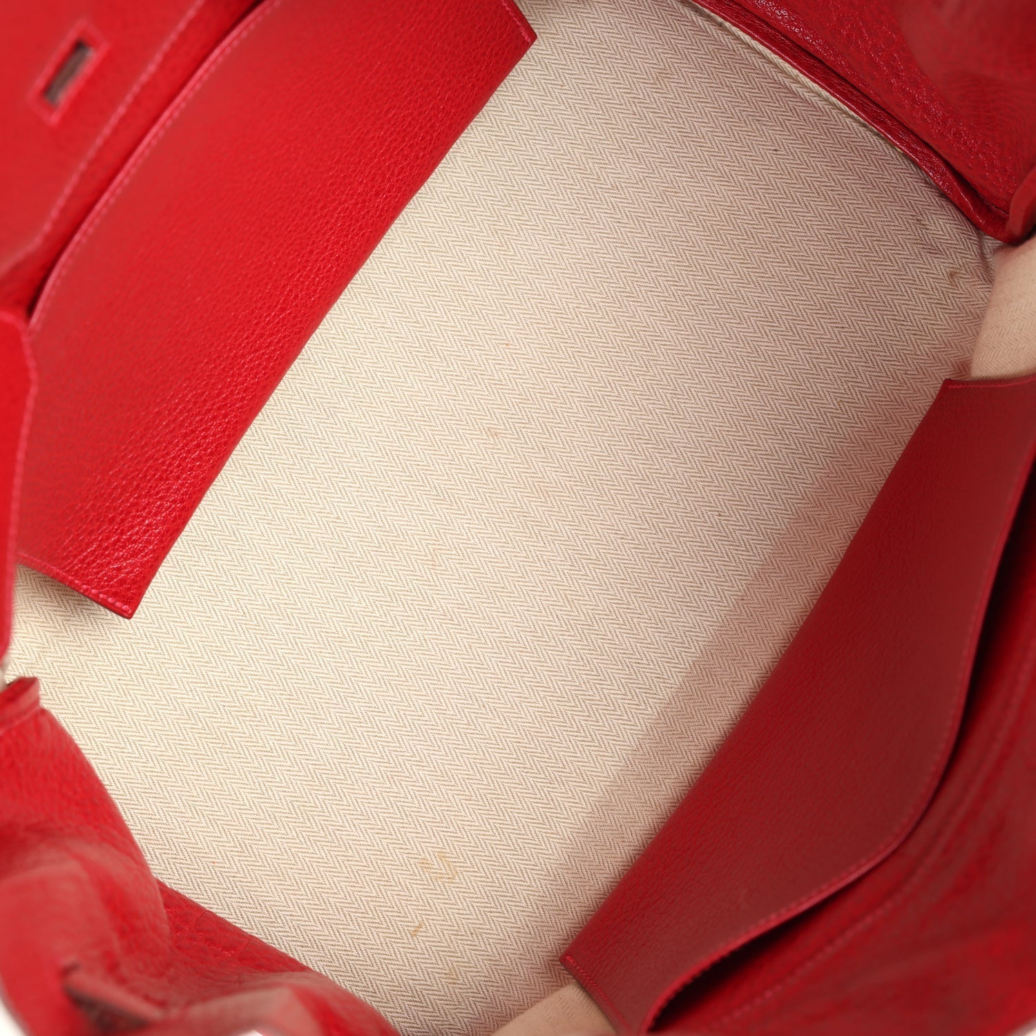 Condition: New ; New - bag is relaxed in shape. There's no plastic on hardware. Moderate scratches to the hardware. The pull straps are a little stretched out. The exterior leather has wear around the corners, some darkening to handles, wear and some staining to the crinoline fabric on the bottom and back of the bag. Interior leather shows signs of wear and minor staining to interior fabric.