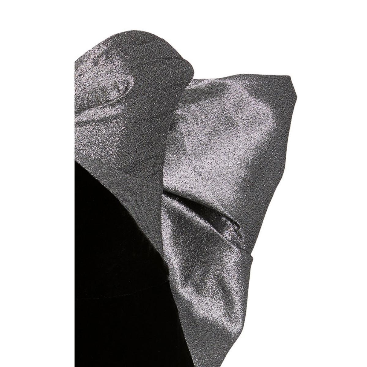 Contrasting metallic short sleeves that drape off the shoulders