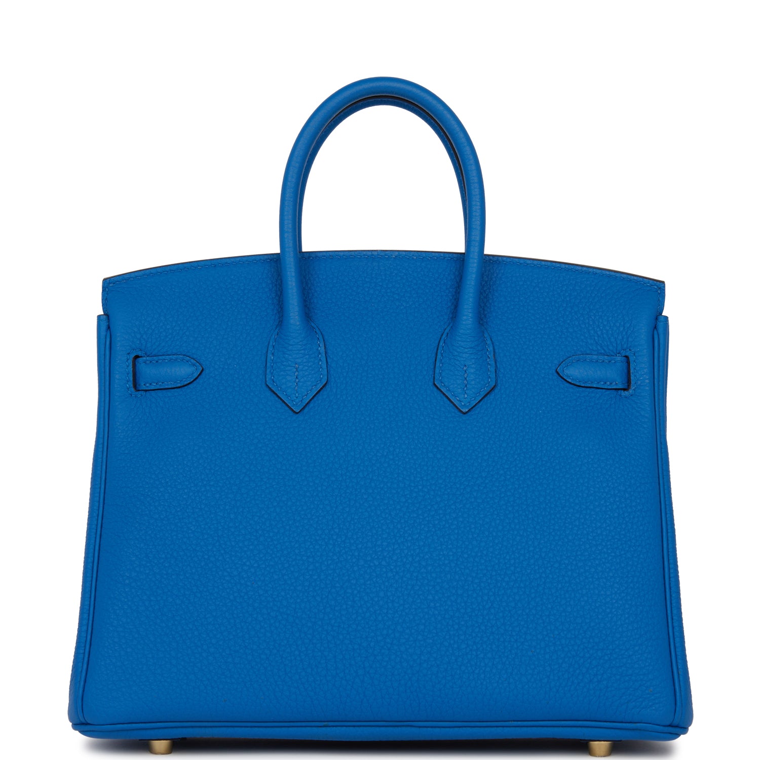 This Birkin is of Bleu Zellige togo with gold hardware and features tonal stitching, front flap, two straps with center toggle closure, clochette with lock and two keys, and double rolled handles.