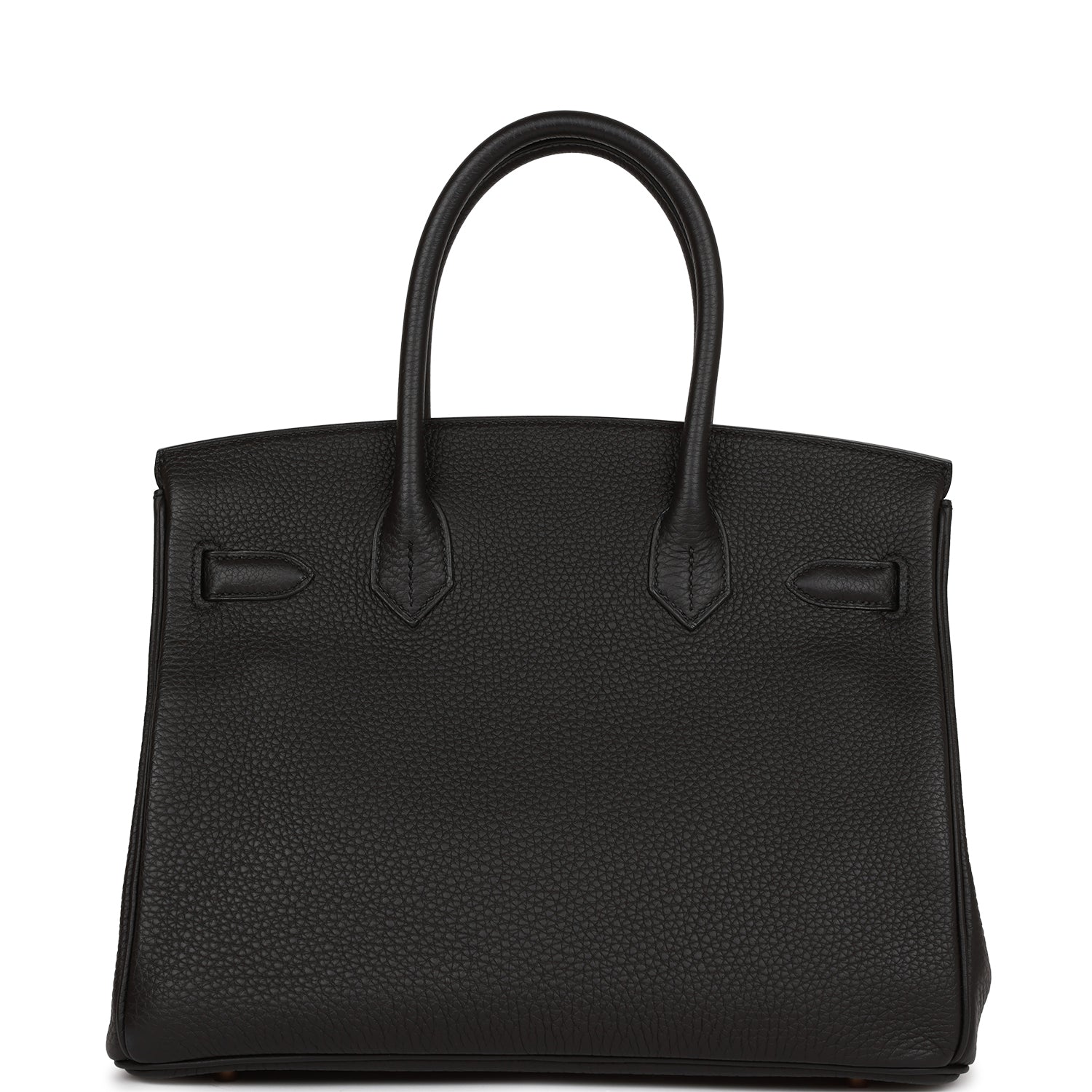 This Birkin is in Black togo leather with rose gold hardware and has tonal stitching, front flap, two straps with center toggle closure, clochette with lock and two keys, and double rolled handles.