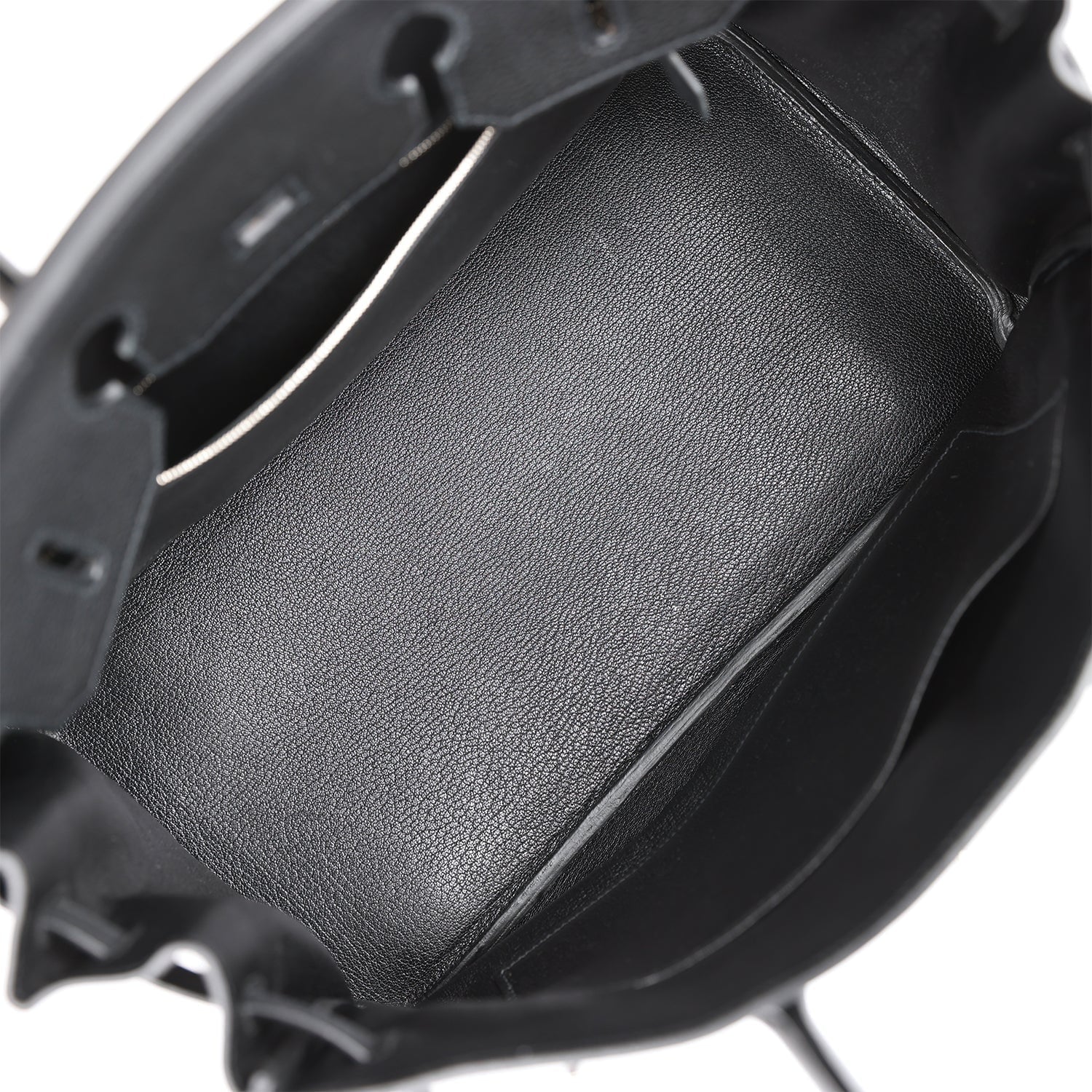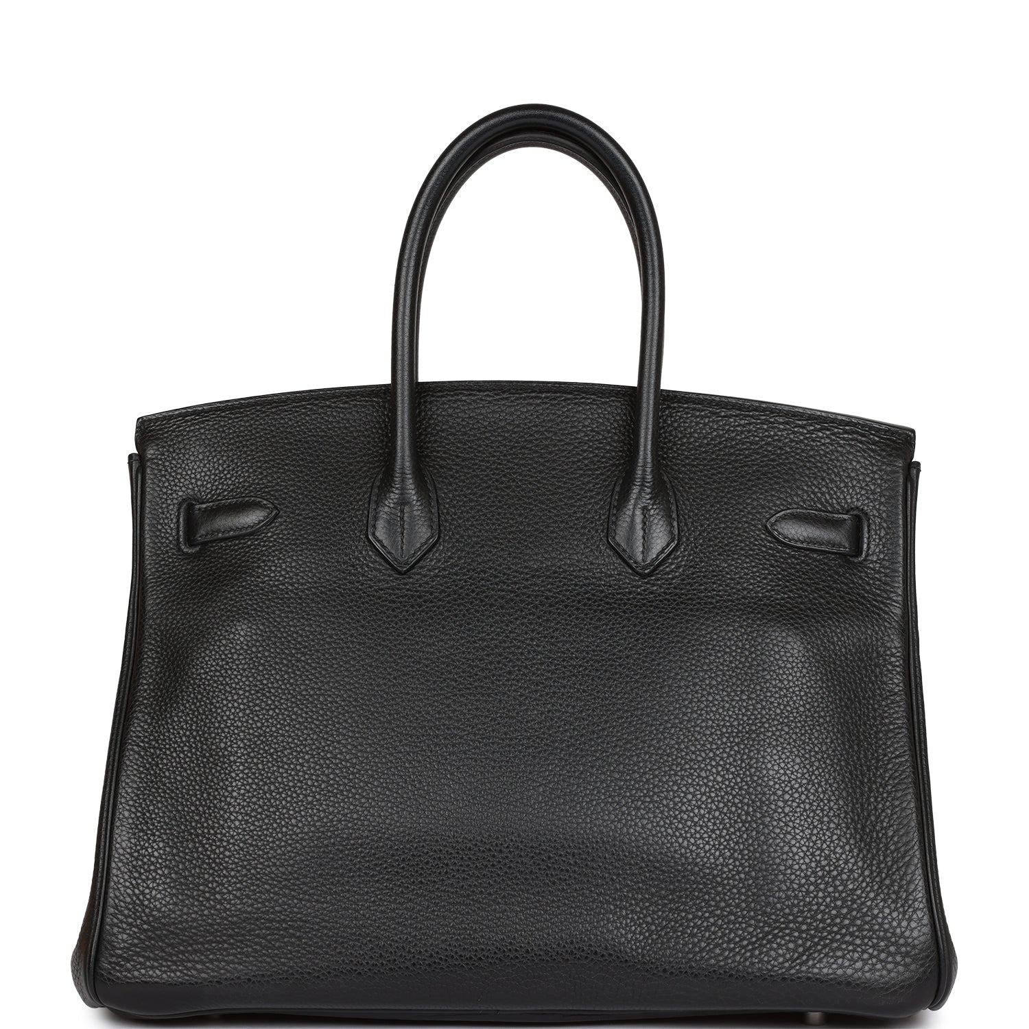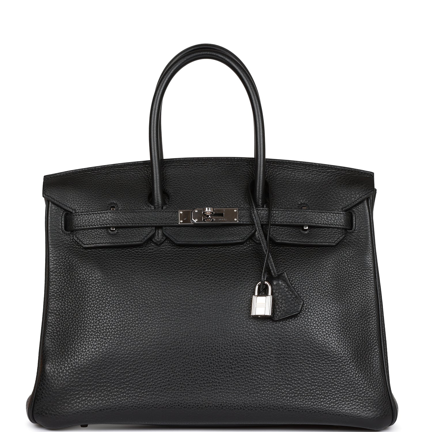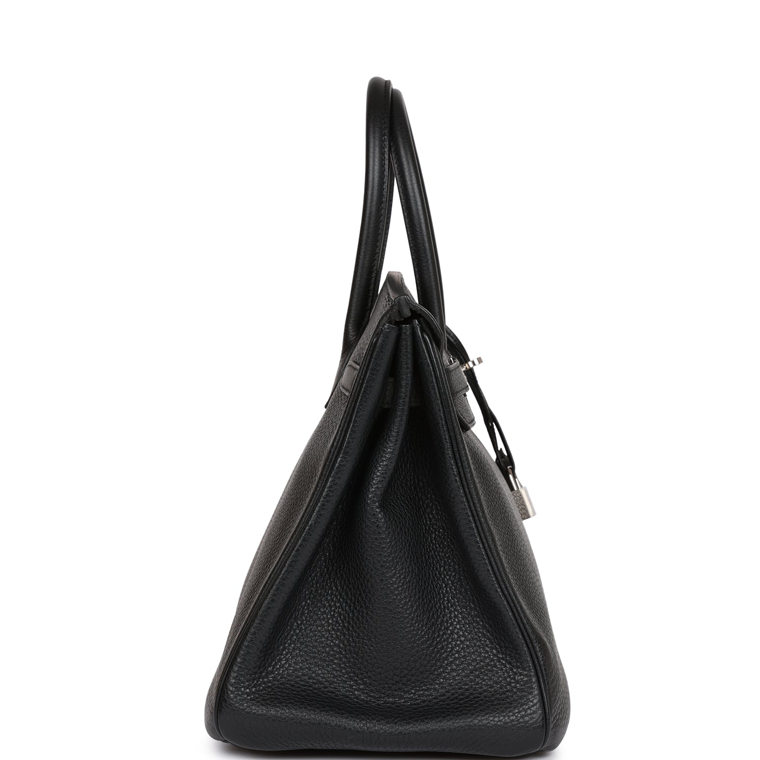 This Birkin is in black clemence leather with palladium hardware and has tonal stitching, front flap, two straps with center toggle closure, clochette with lock and two keys, and double rolled handles.
