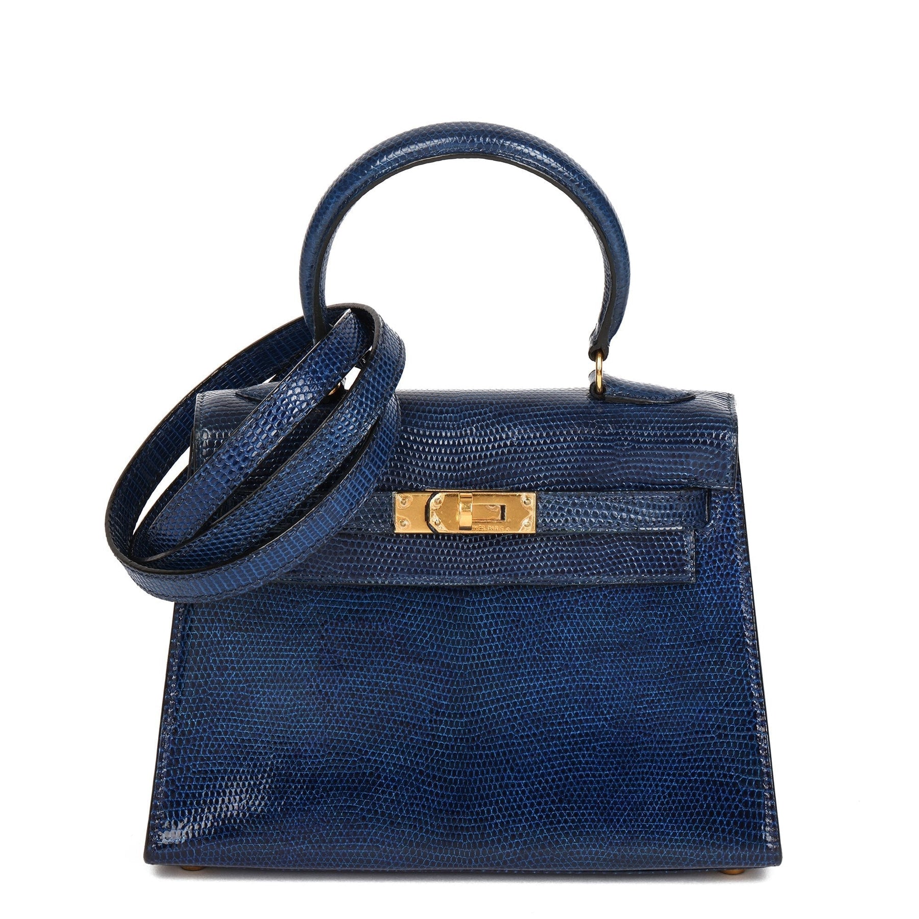 Hermes Blue Saphir Lizard Leather Vintage Kelly 20cm Sellier Shoulder Bag