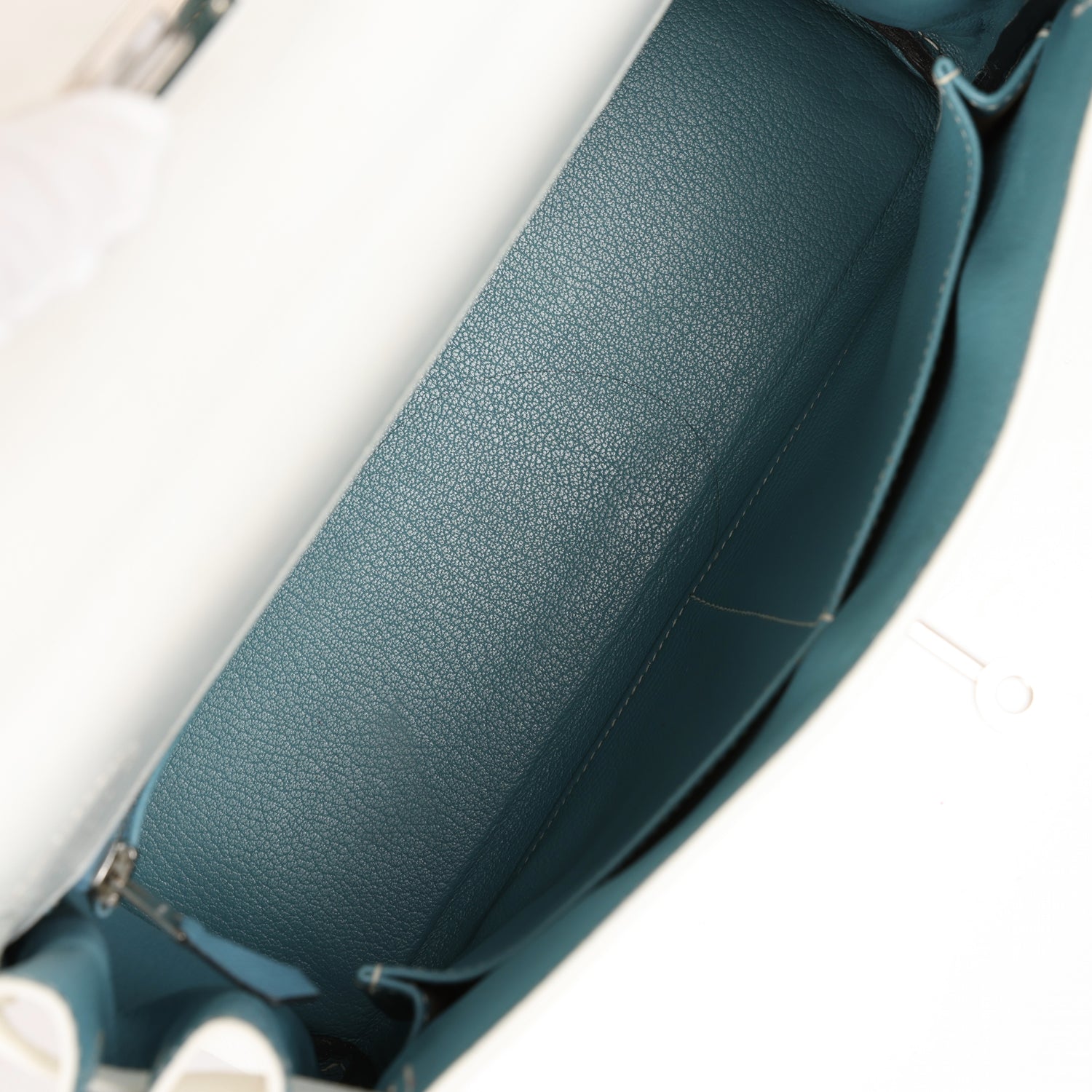 Top Quality Hermes Bi-color Kelly Retourne 28 White and Blue Jean Epsom Palladium Hardware