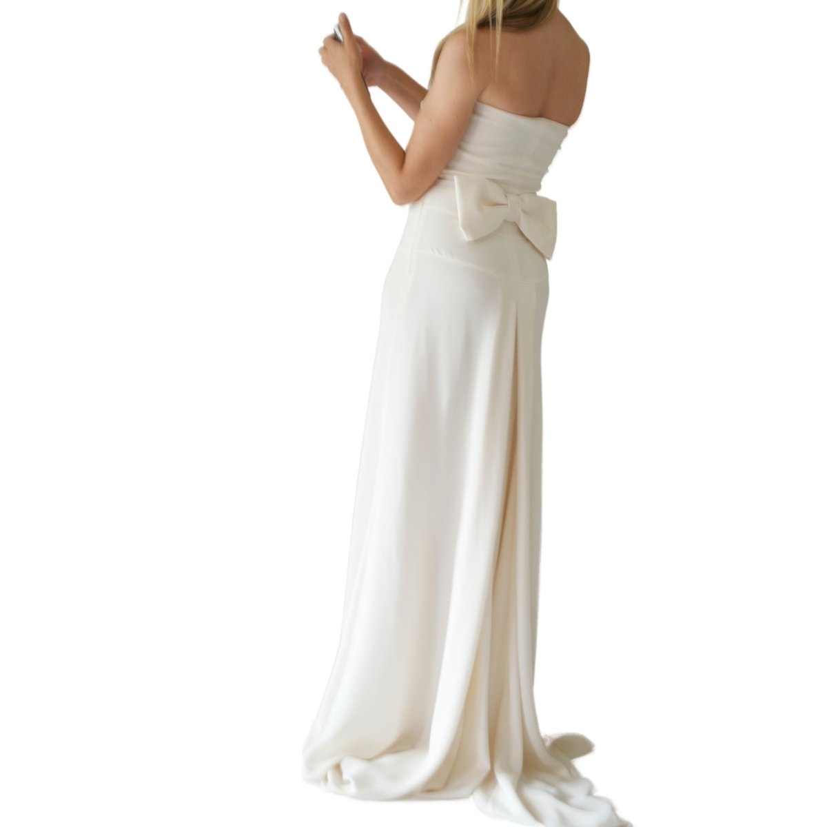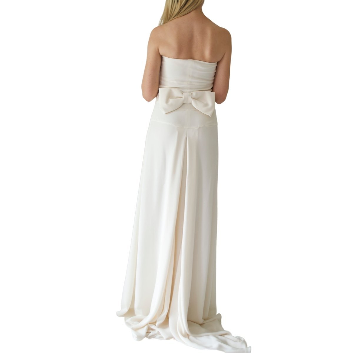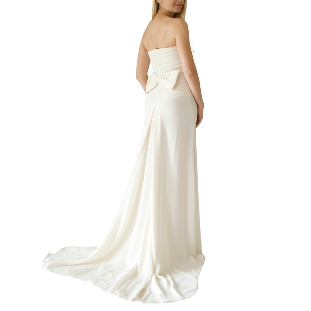 Elegantly adorned with an oversized bow, Valentino's ivory silk strapless gown