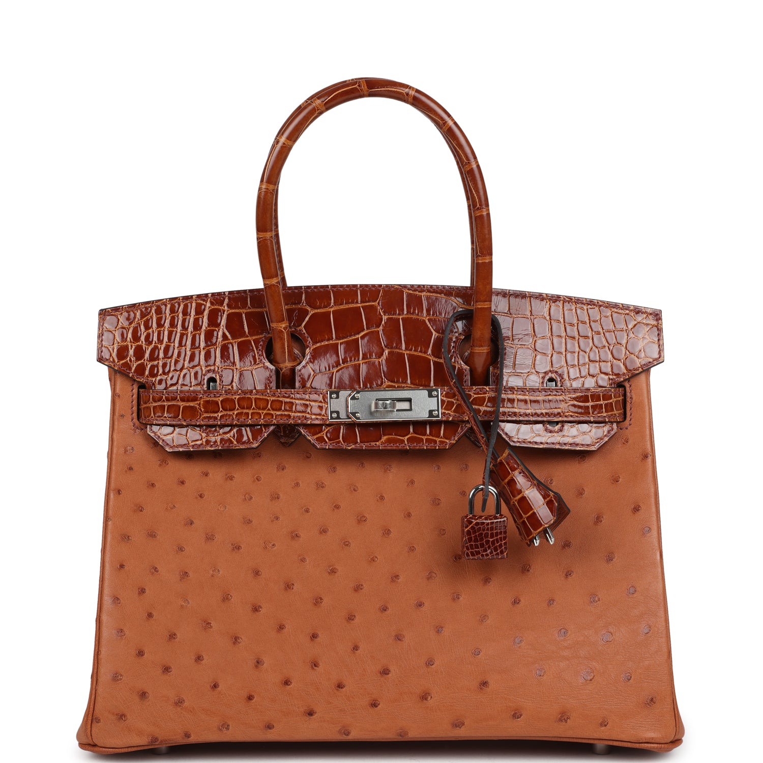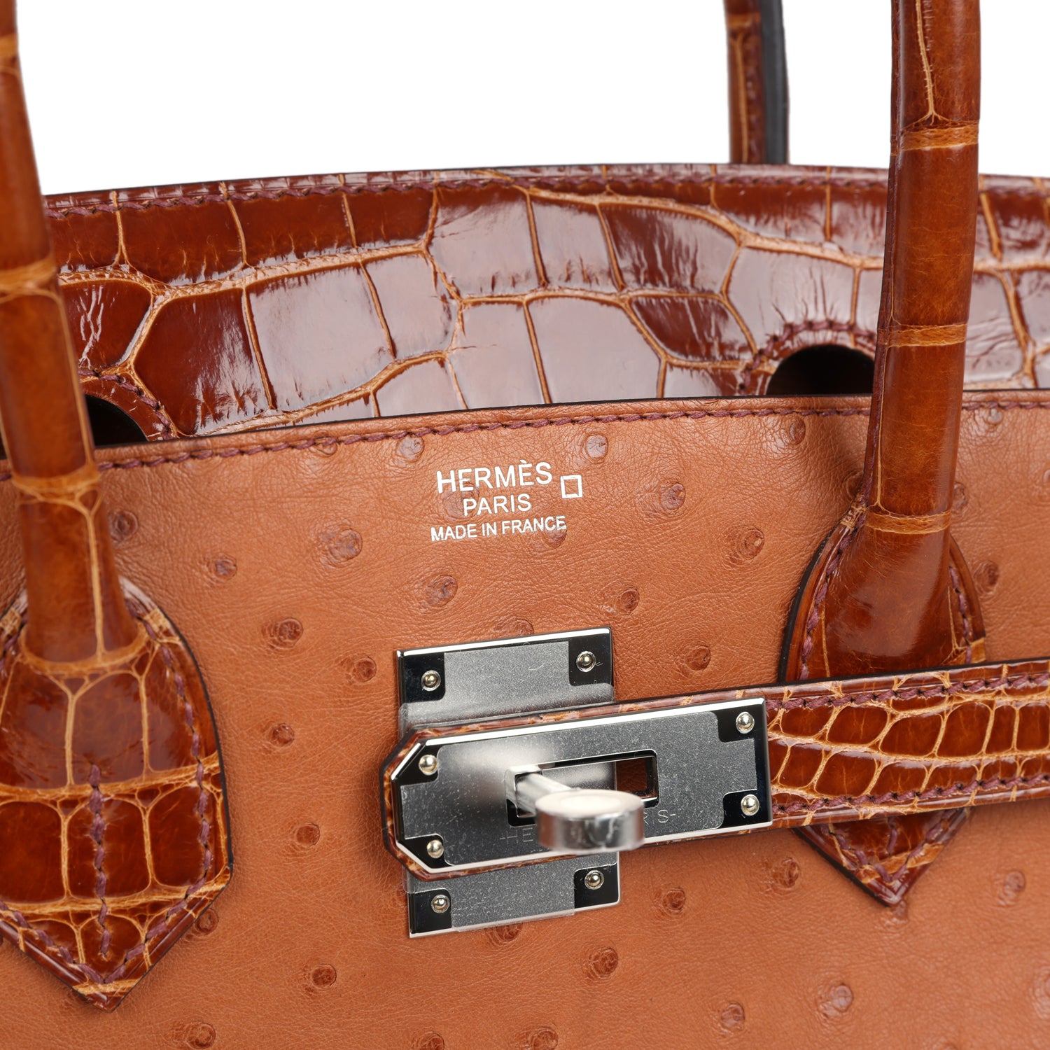 Hermes Birkin 30 Miel Shiny Alligator and Cognac Ostrich Touch Palladium Hardware