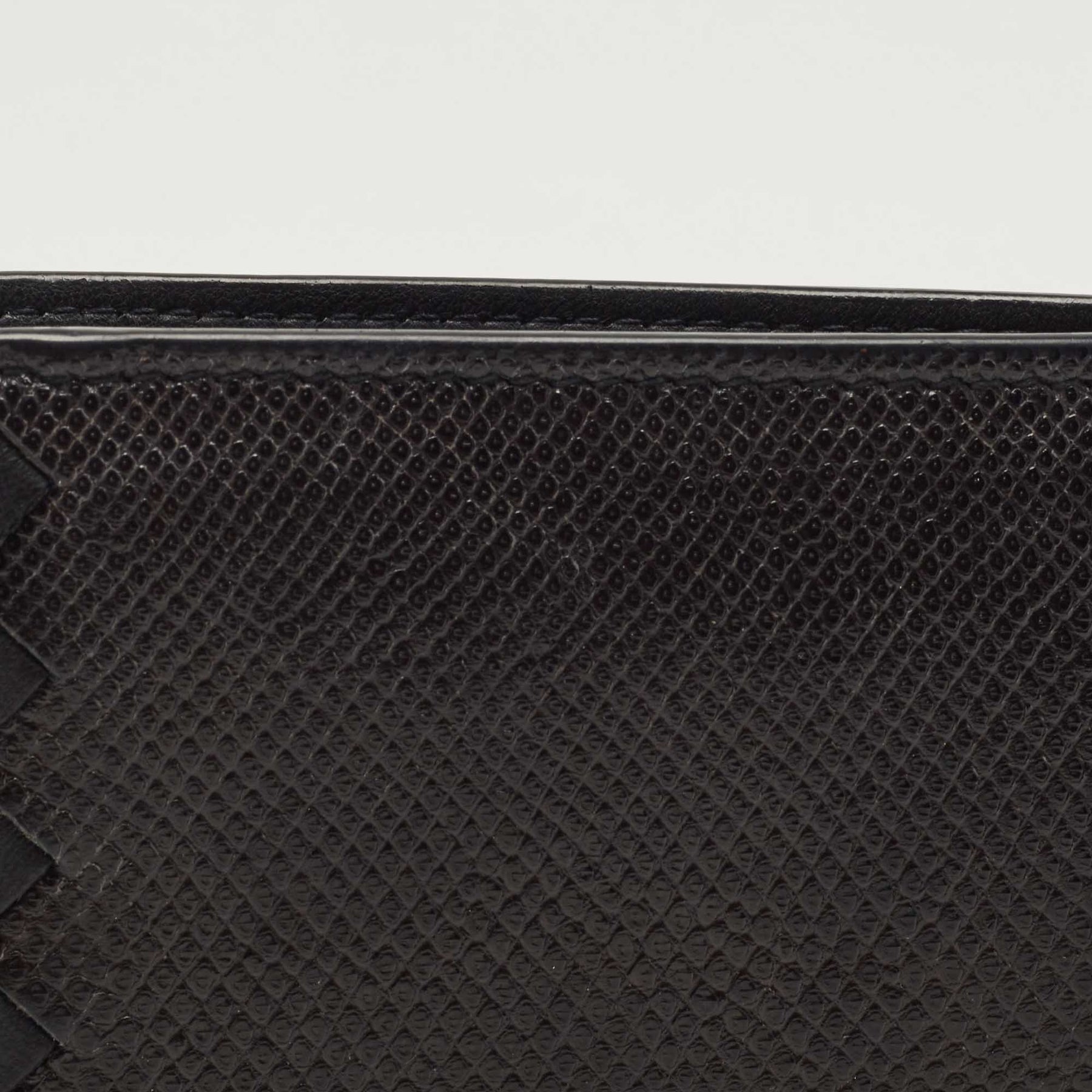 BOTTEGA VENETA Black Intrecciato Karung and Leather Bifold Wallet