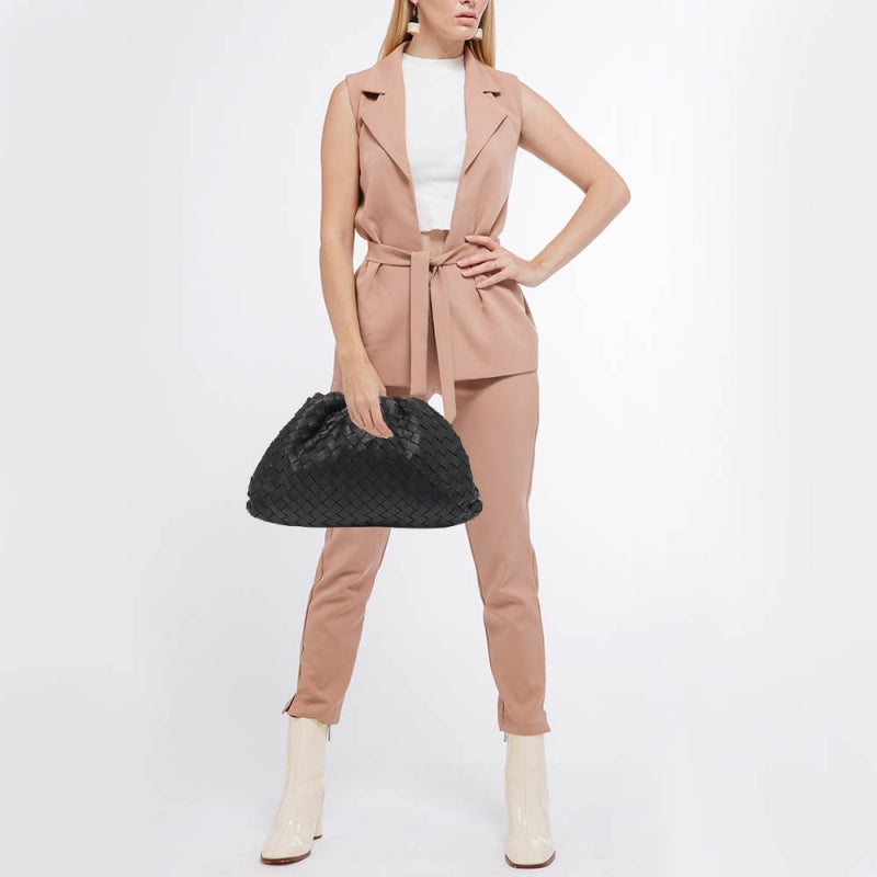 BOTTEGA VENETA Black Intrecciato Leather The Pouch Clutch