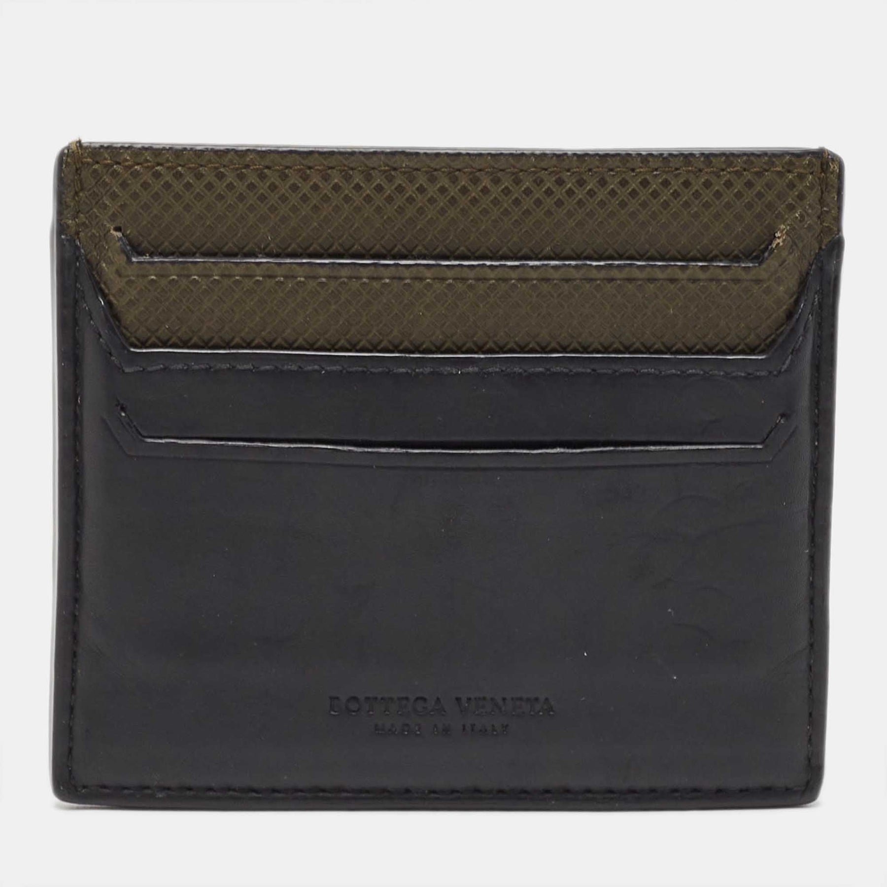 BOTTEGA VENETA Black/Olive Green Leather Card Holder