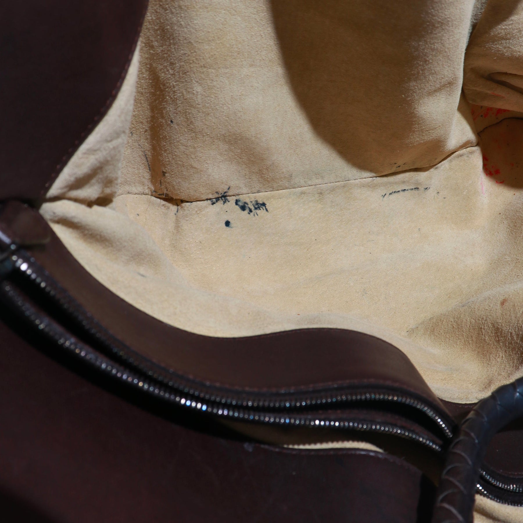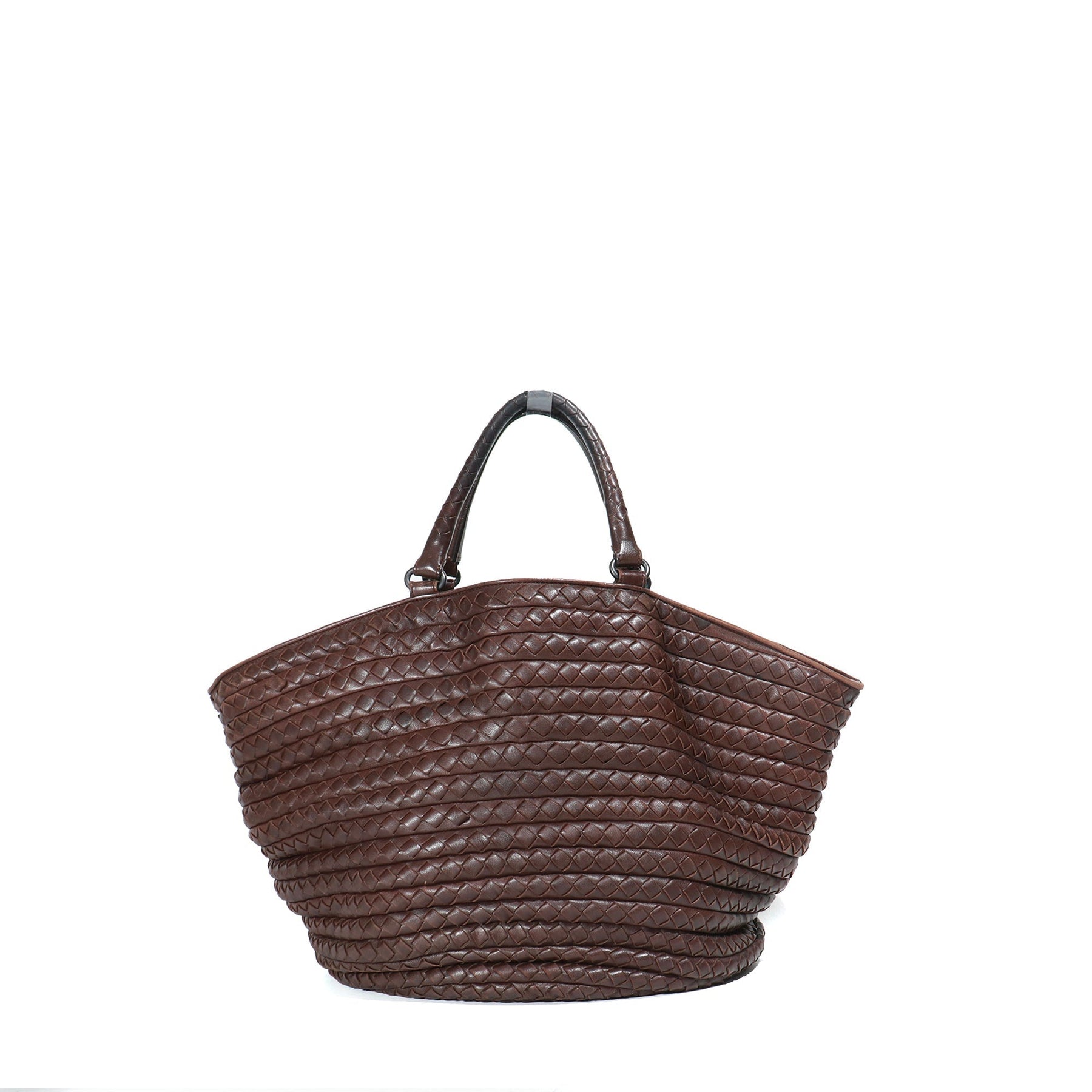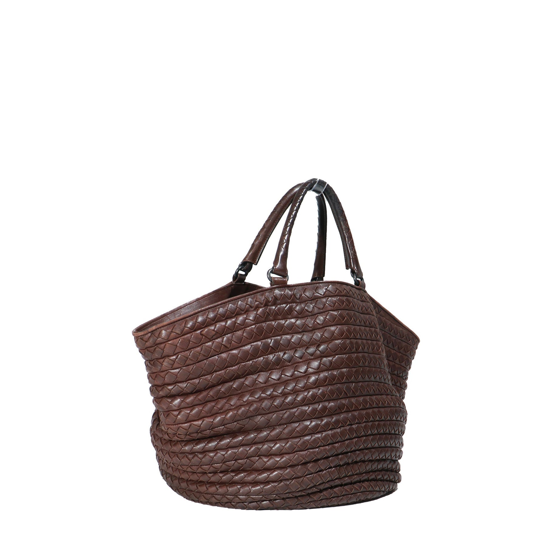 Model: Intrecciato tote bag Material: Leather Brown color Large capacity Dimensions: 50 x 30 x 20 cm Suede interior Marks on leather and internal (pen) Patinated handles