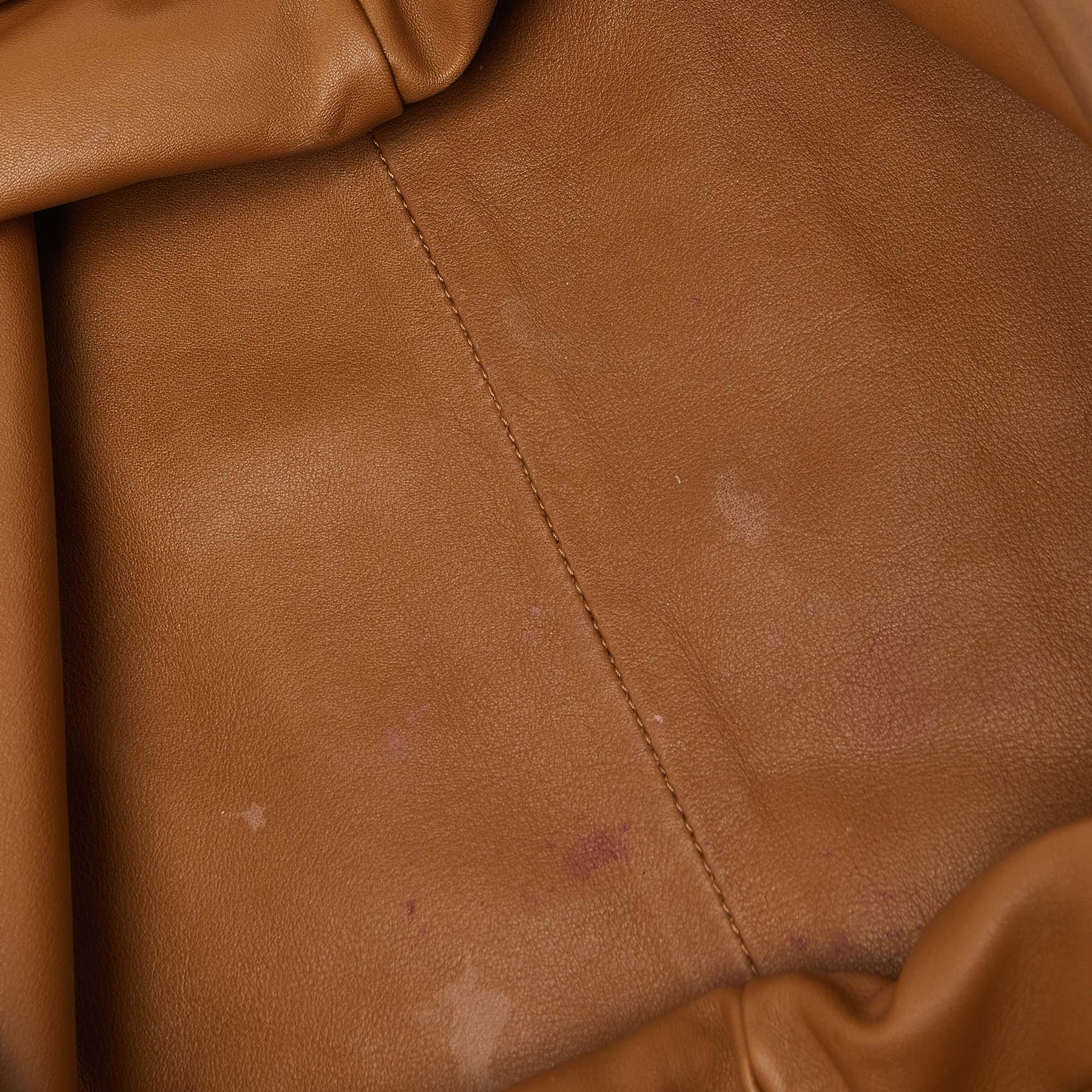 This version of the famous Bottega Veneta pouch is skillfully crafted from leather in a brown hue. It has the signature gather top and a spacious leather interior.