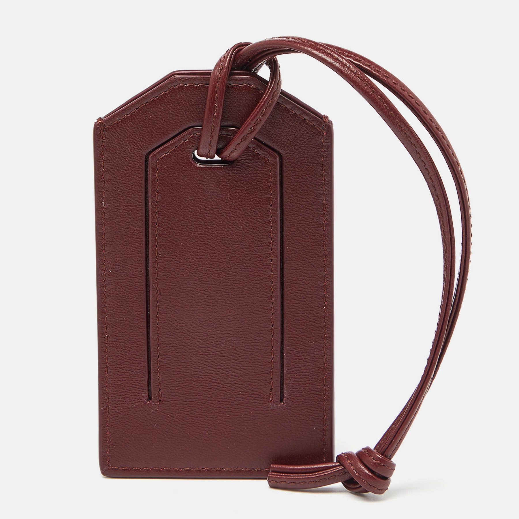 BOTTEGA VENETA Maroon Intrecciato Leather Name Tag Holder