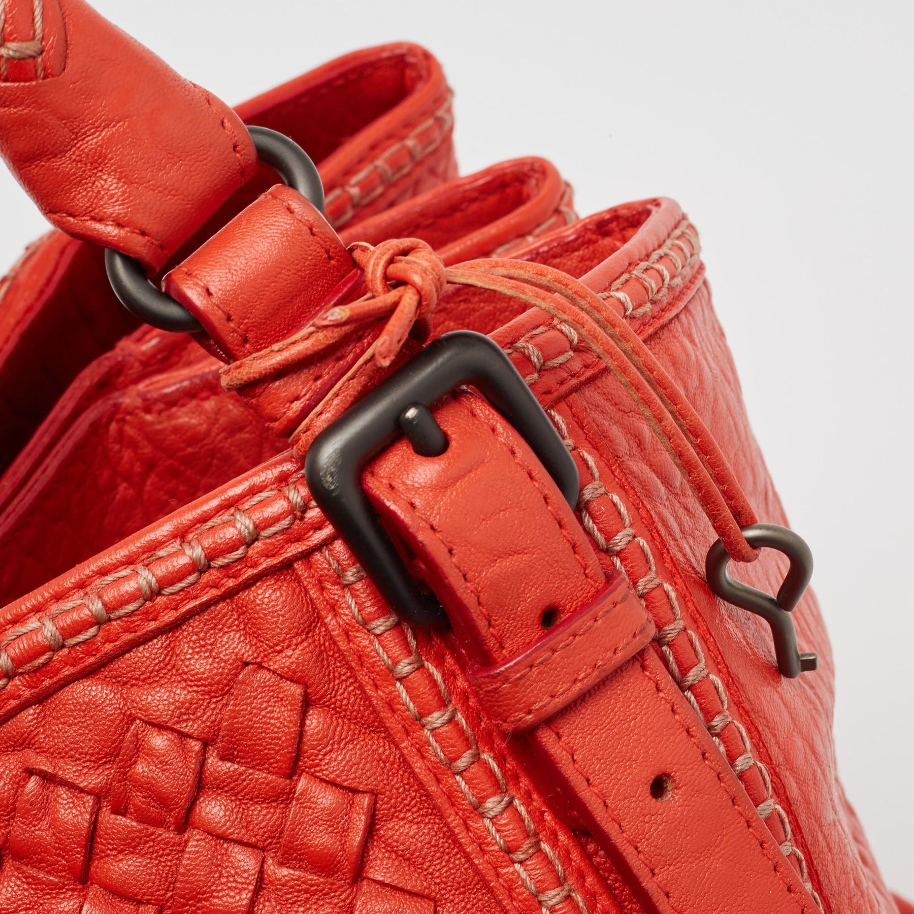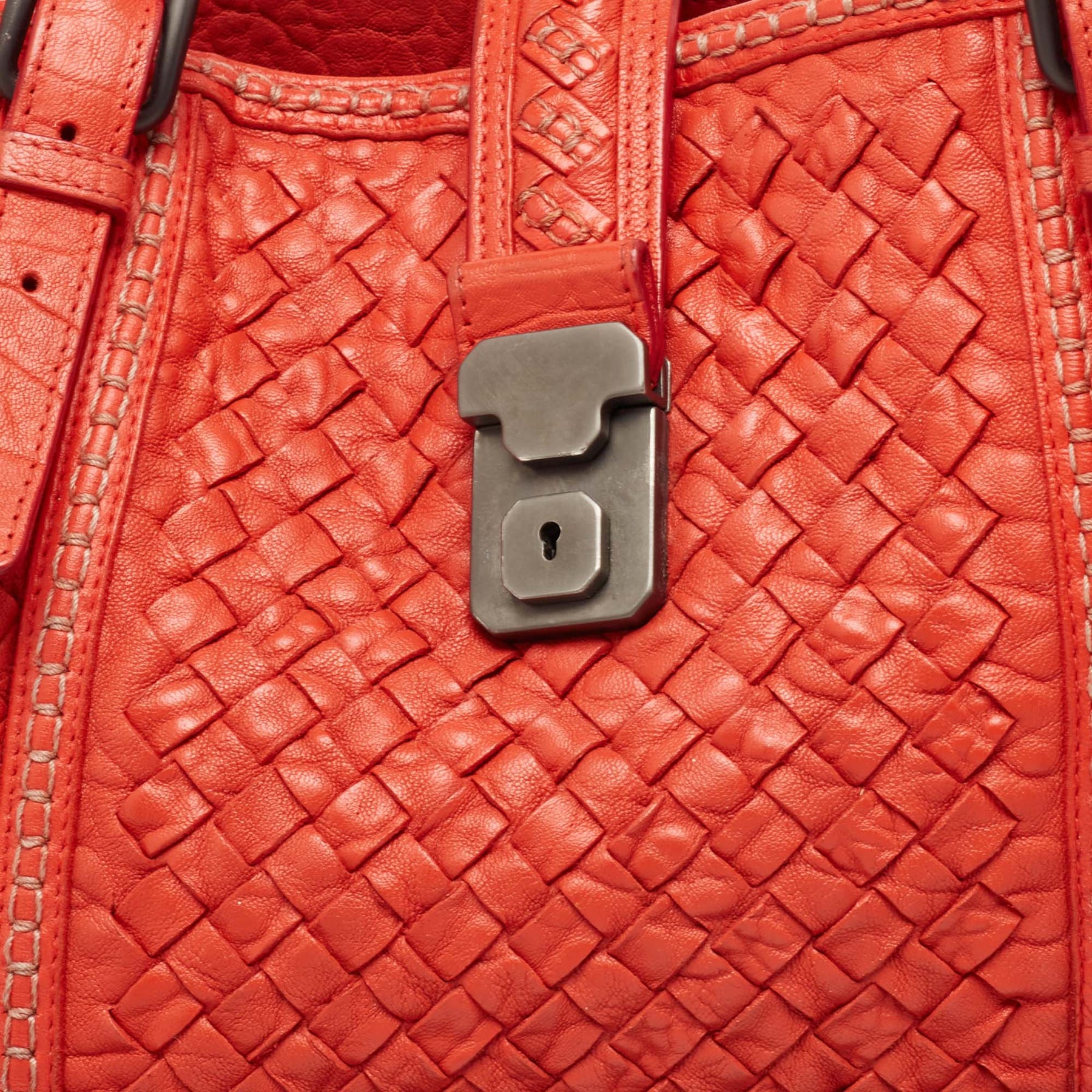 This Bottega Veneta tote is a creation that brings joy to ones sight It has been beautifully crafted from leather in their signature Intrecciato pattern and is held by two top handles. The bag is also equipped with a flap lock which secures the suede interior that will dutifully hold all your belongings.