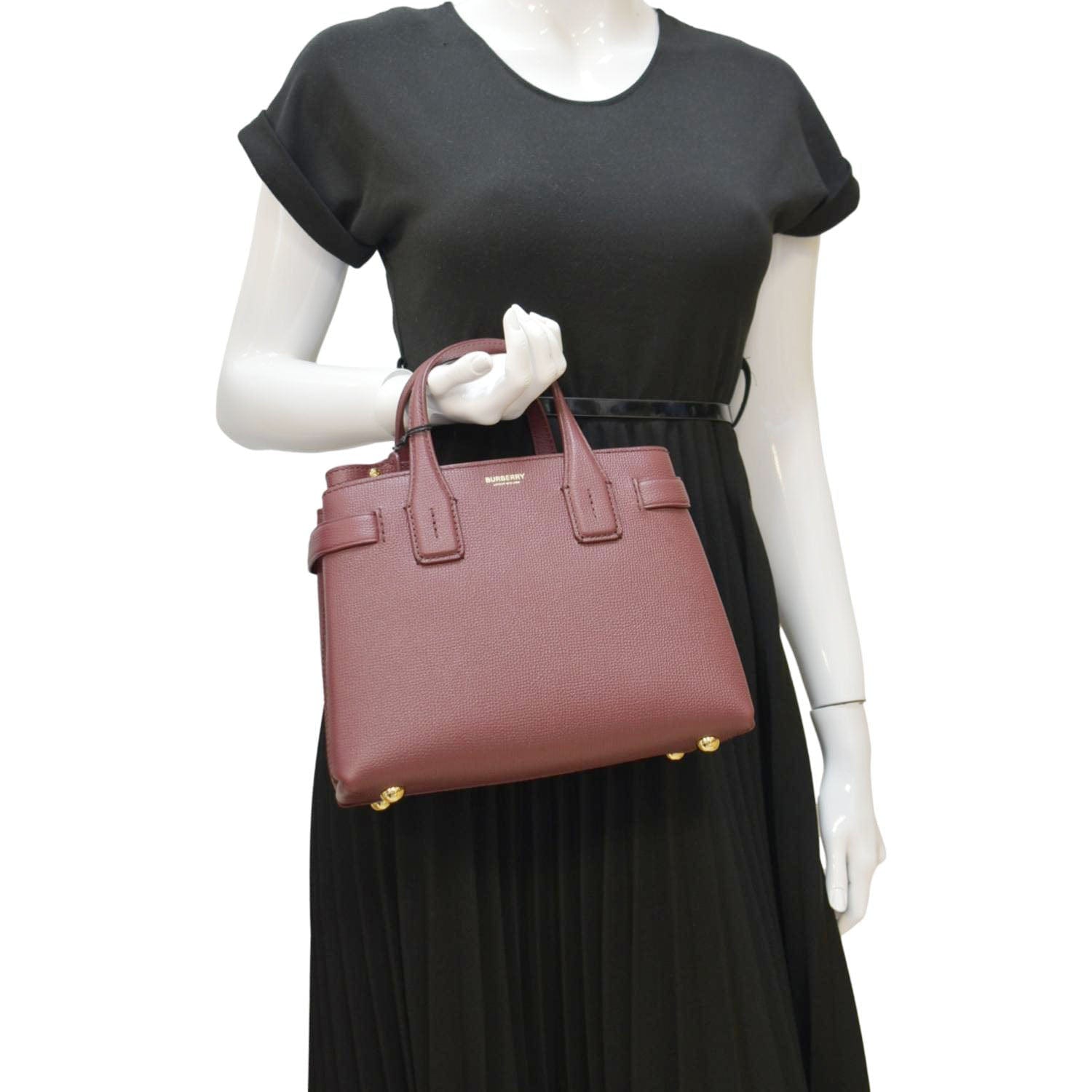Burberry Banner Small House Check Leather Tote Shoulder Bag Maroon
