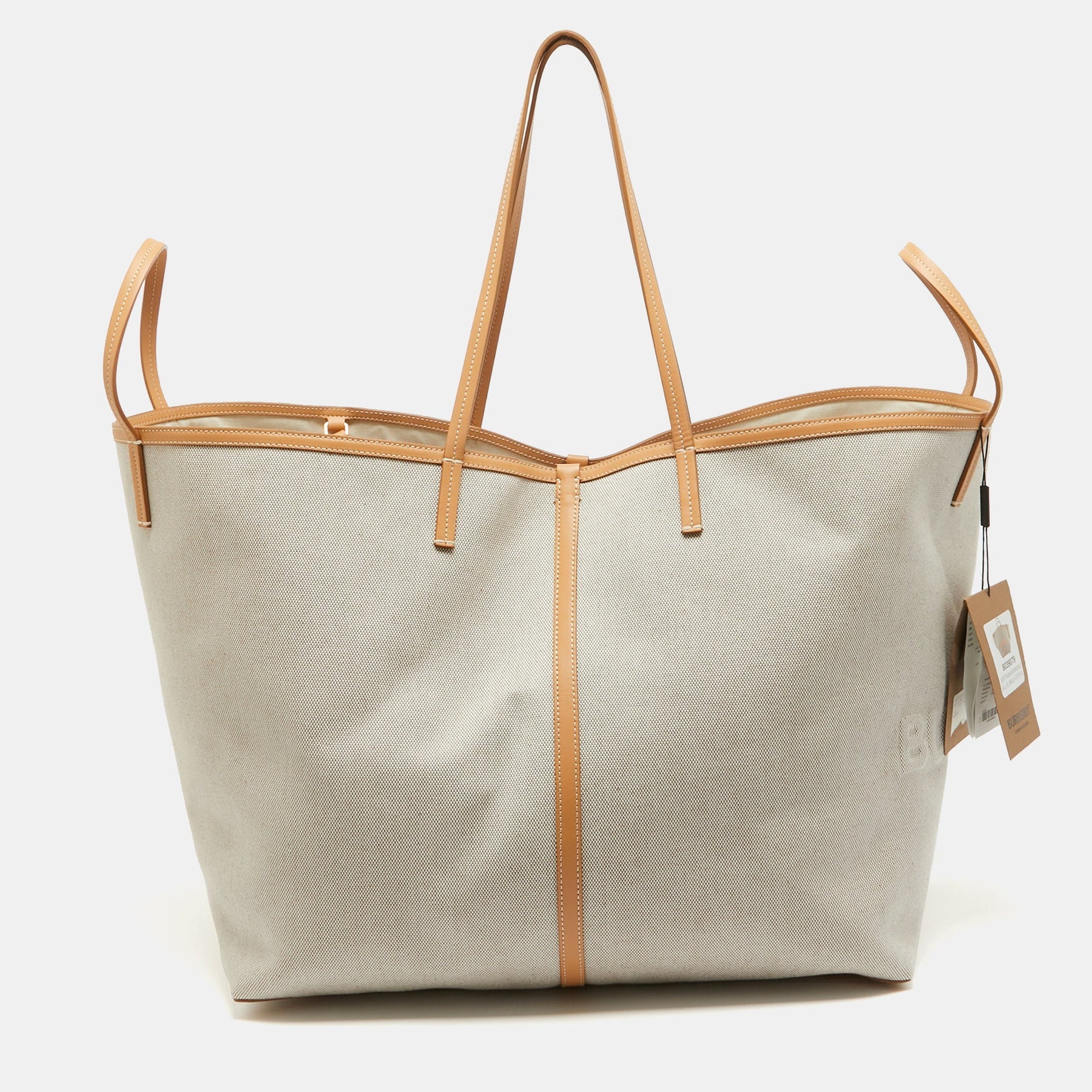 BURBERRY Beige Canvas and Leather XL Beach Tote
