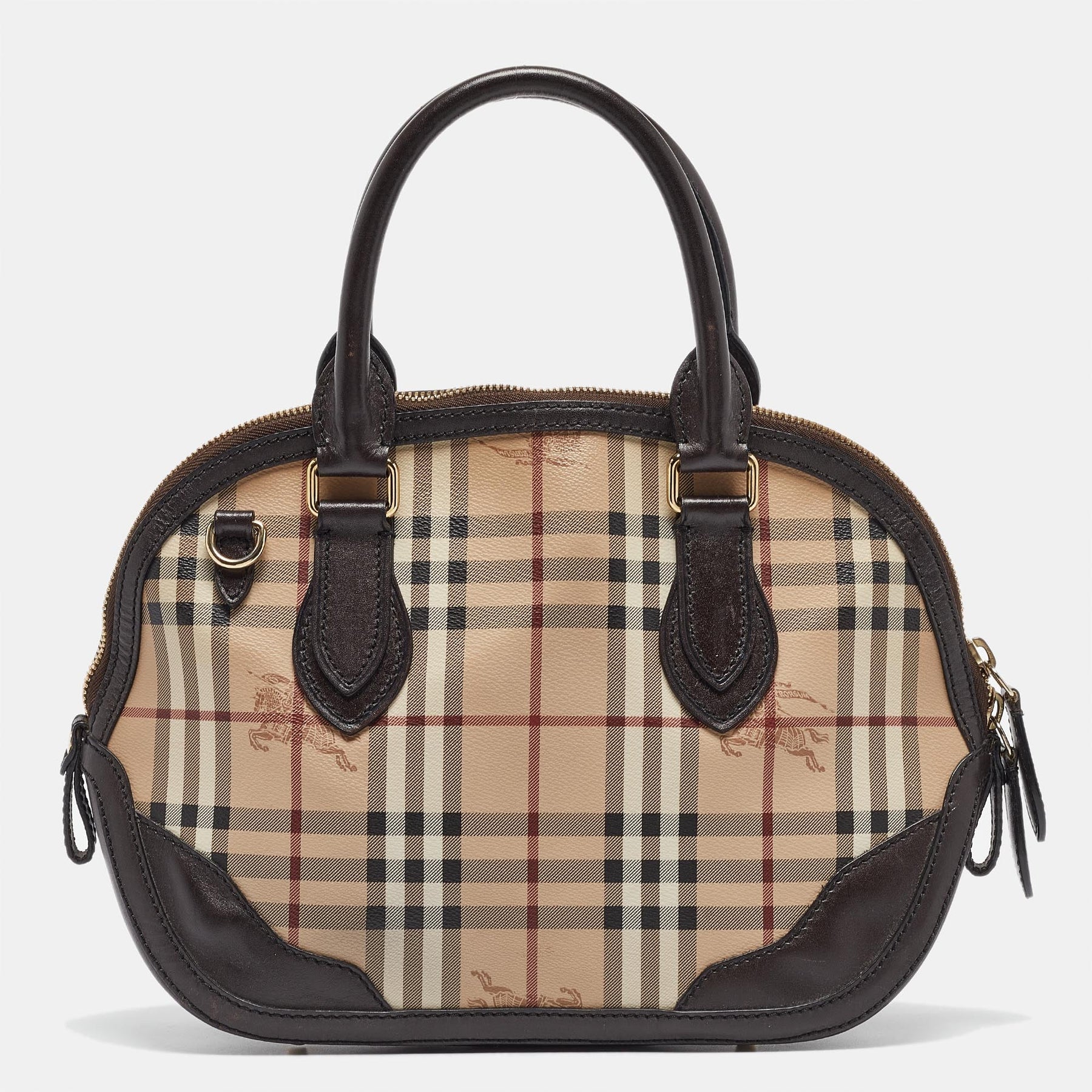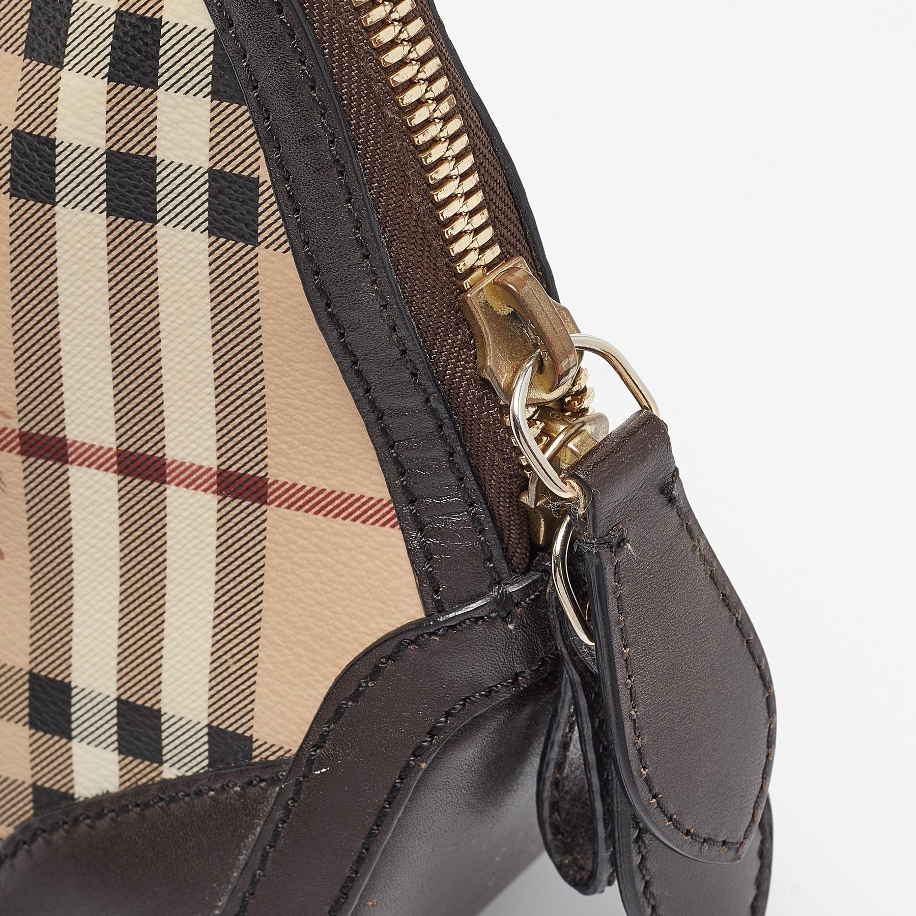 BURBERRY Beige/Dark Brown House Check Coated Canvas and Leather Orchard Bag