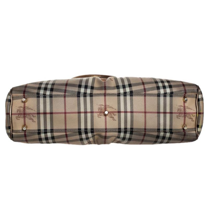Burberry Beige/Gold Haymarket Check Coated Canvas and Leather Bridle Tote