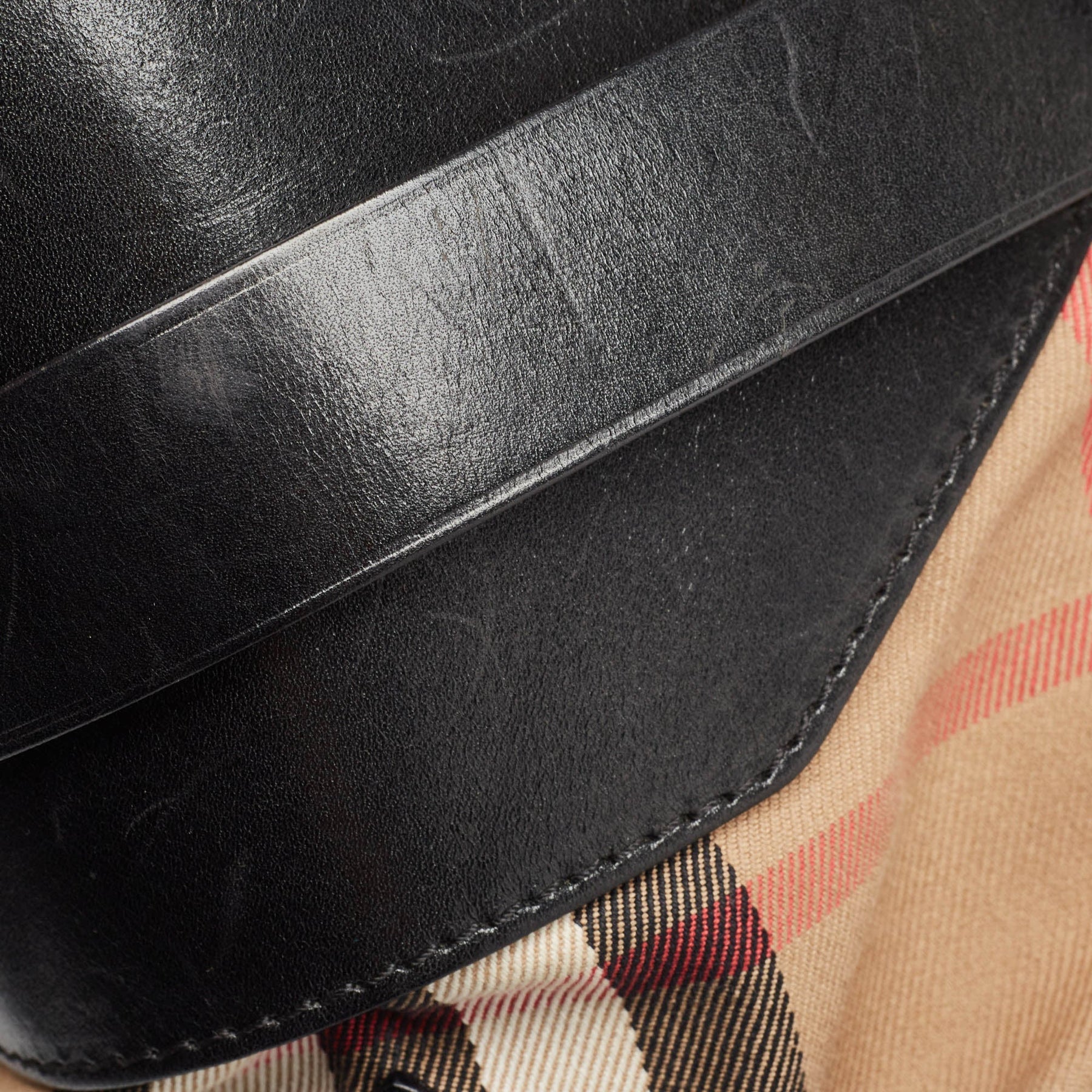BURBERRY Black/Beige House Check Fabric Medium Bridle Lynher Tote
