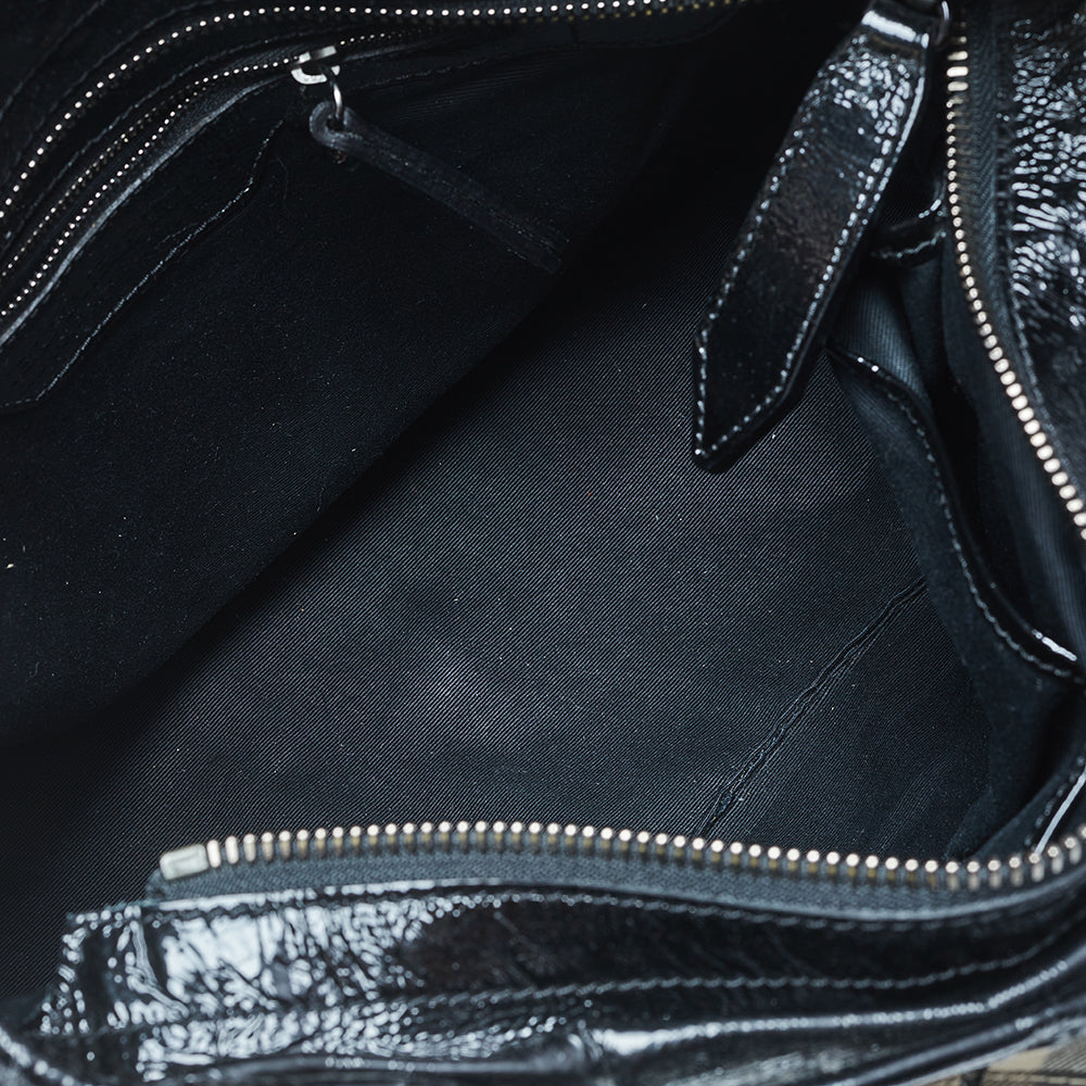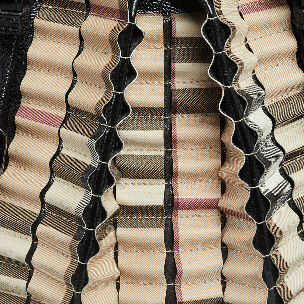 Burberry Black/Beige House Check PVC and Patent Leather Lowry Ruffled Tote