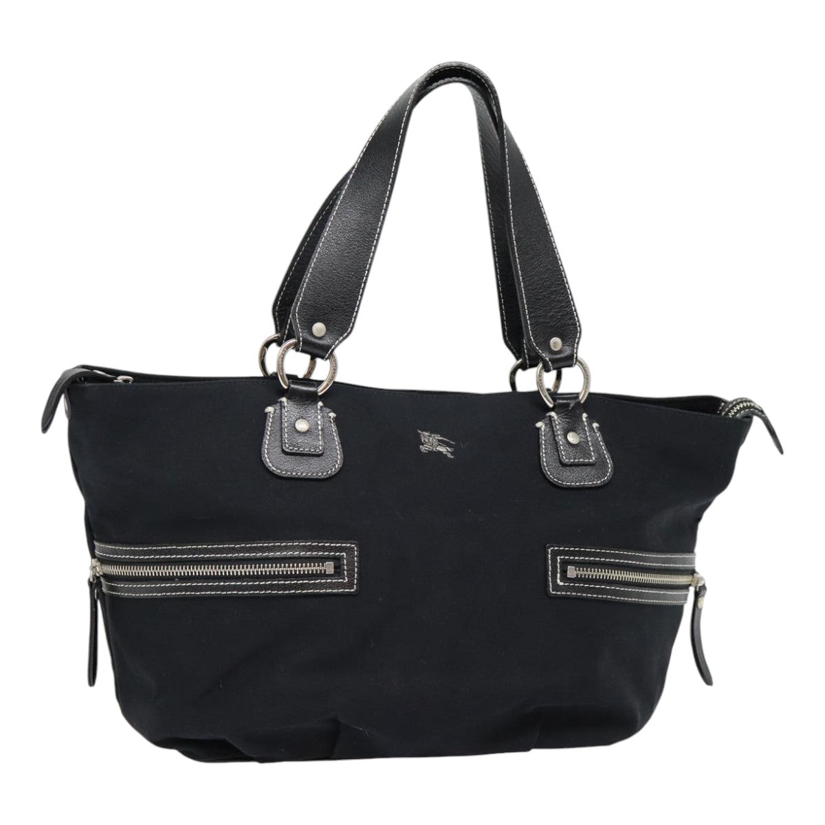 BURBERRY Blue Label Tote Bag Canvas Leather Black Silver Auth bs17025