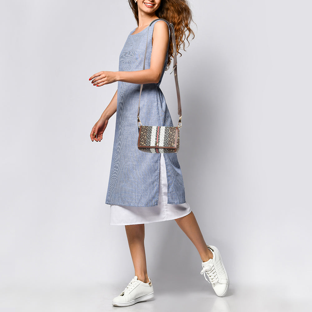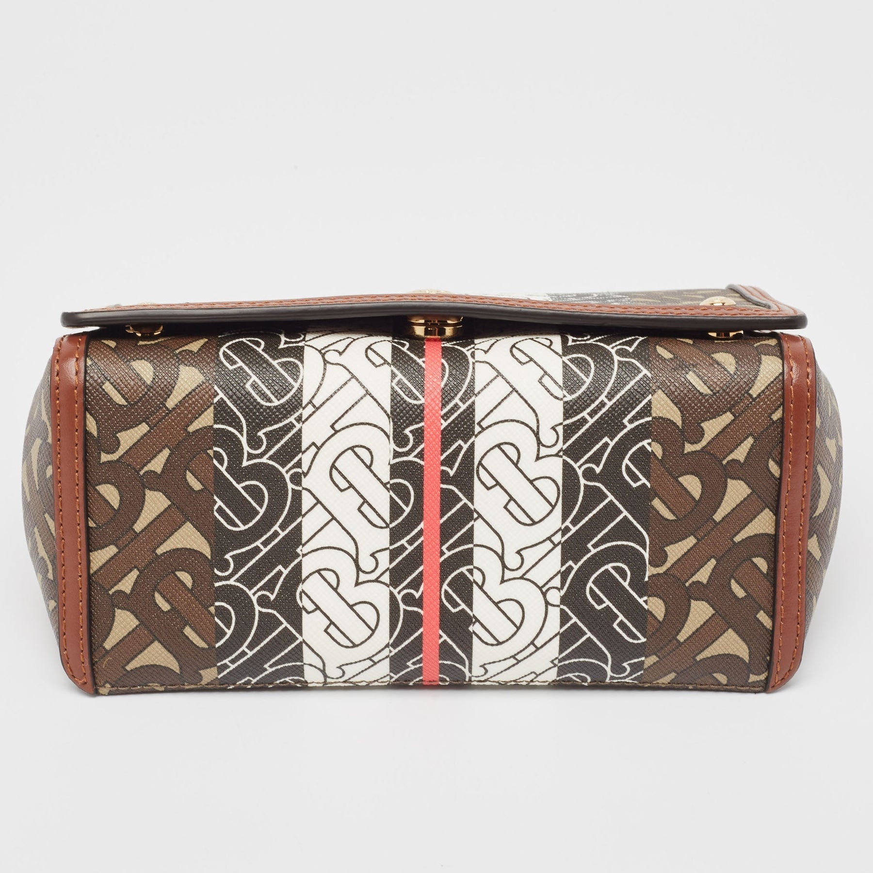 Burberrys TB monogram gives any creation a modern update. This Hackberry bag is a case in point. It is covered in TB print coated canvas in luxe shades, transforming the classic flap silhouette into a contemporary accessory.