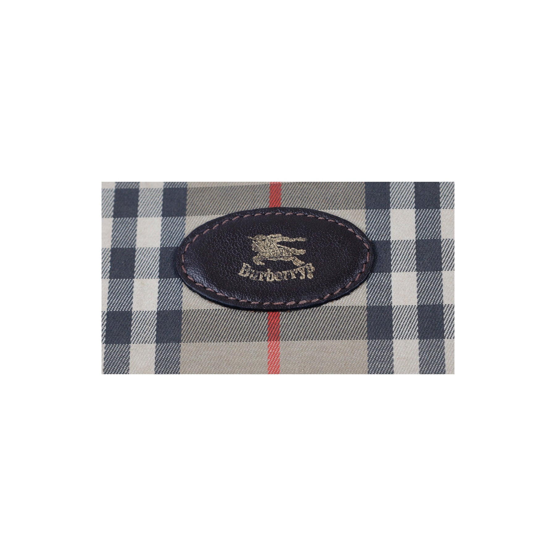 Featuring iconic Burberry check and a olive toned finish, it is fashioned with contrasting dark brown leather trims and details.