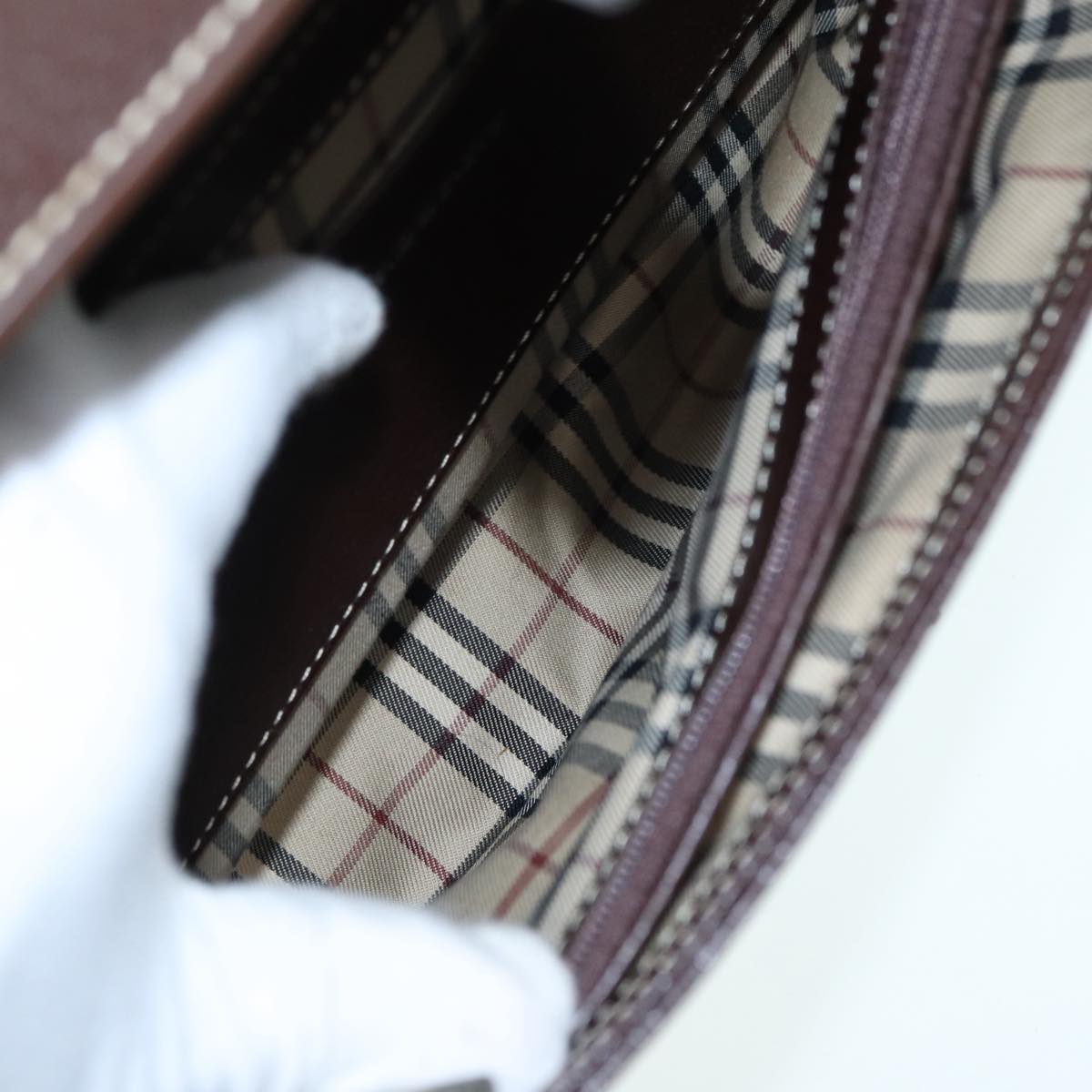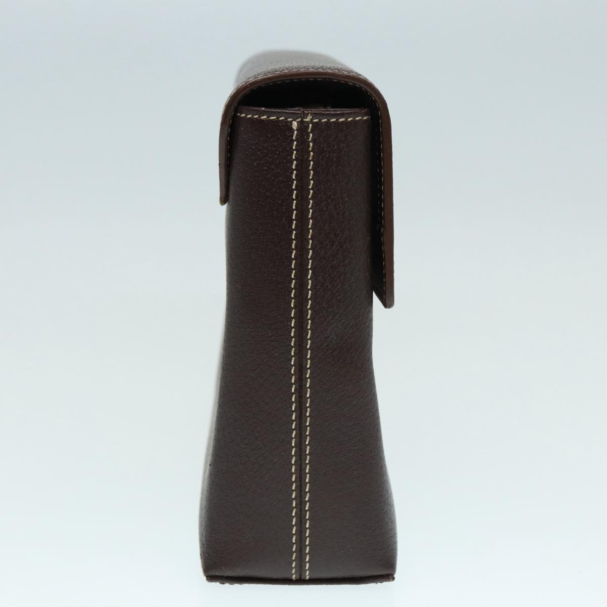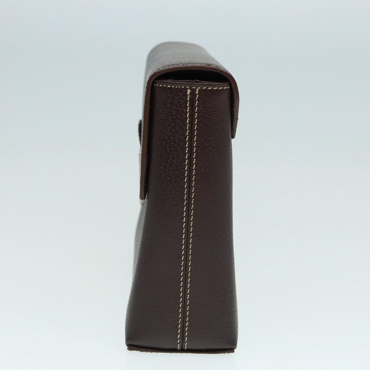 BURBERRY Clutch Bag Leather Brown Silver Auth 88564