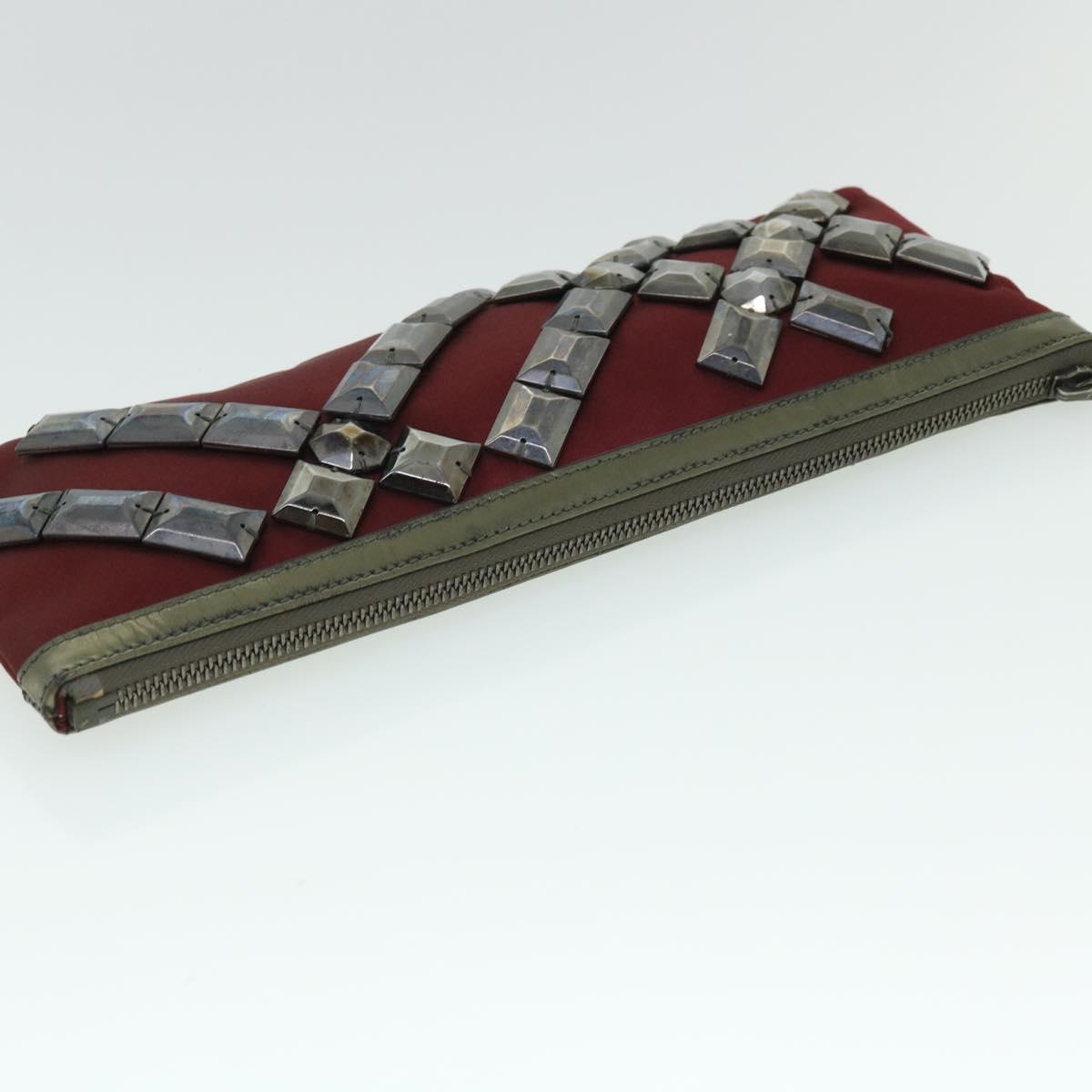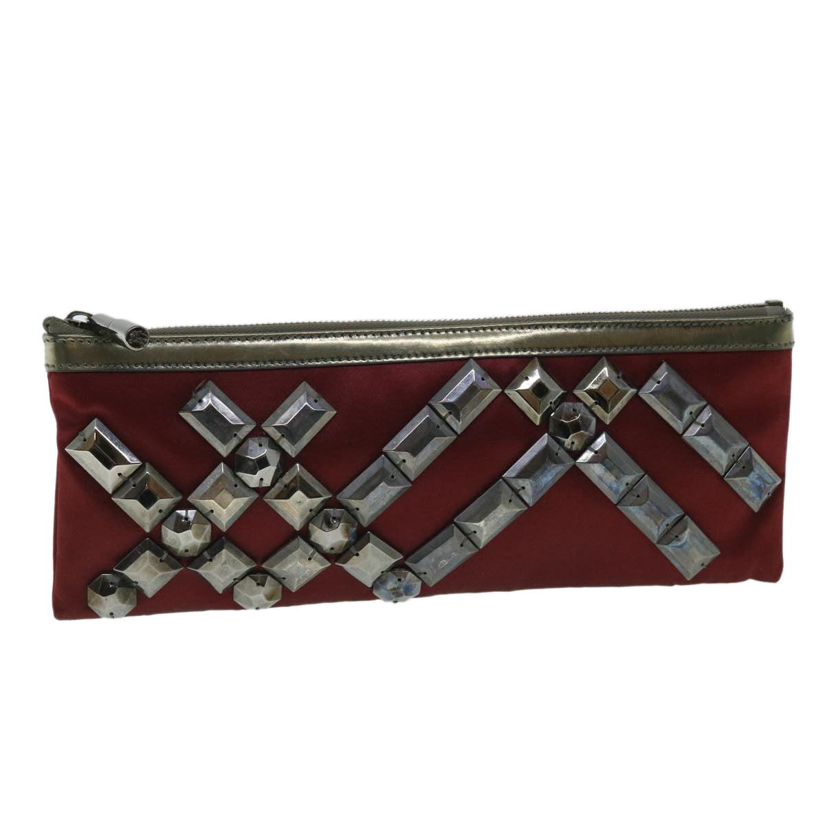 BURBERRY Clutch Bag Satin Red Auth bs8238
