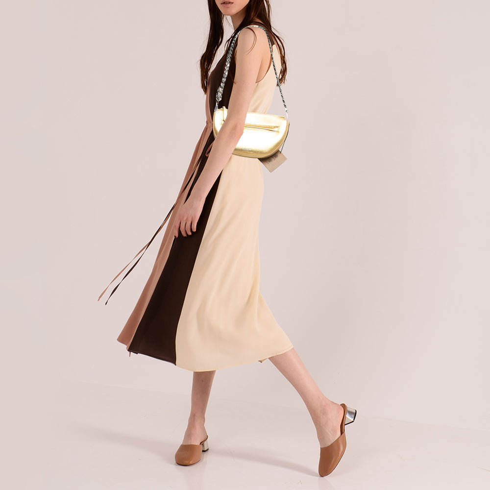 Burberry Gold Leather Mini Olympia Zip Chain Bag