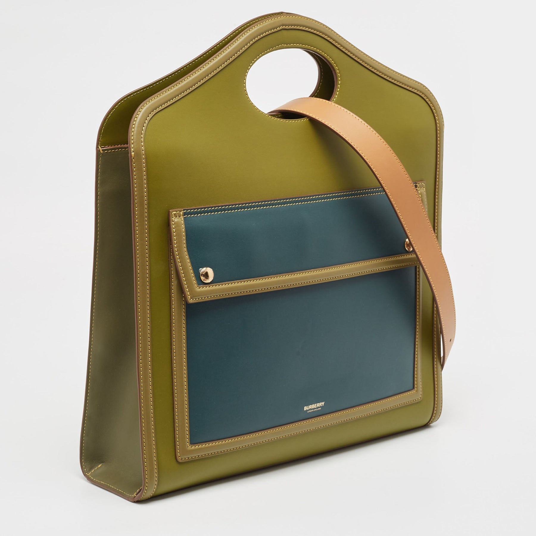 BURBERRY Green/Blue Leather Medium Pocket Bag