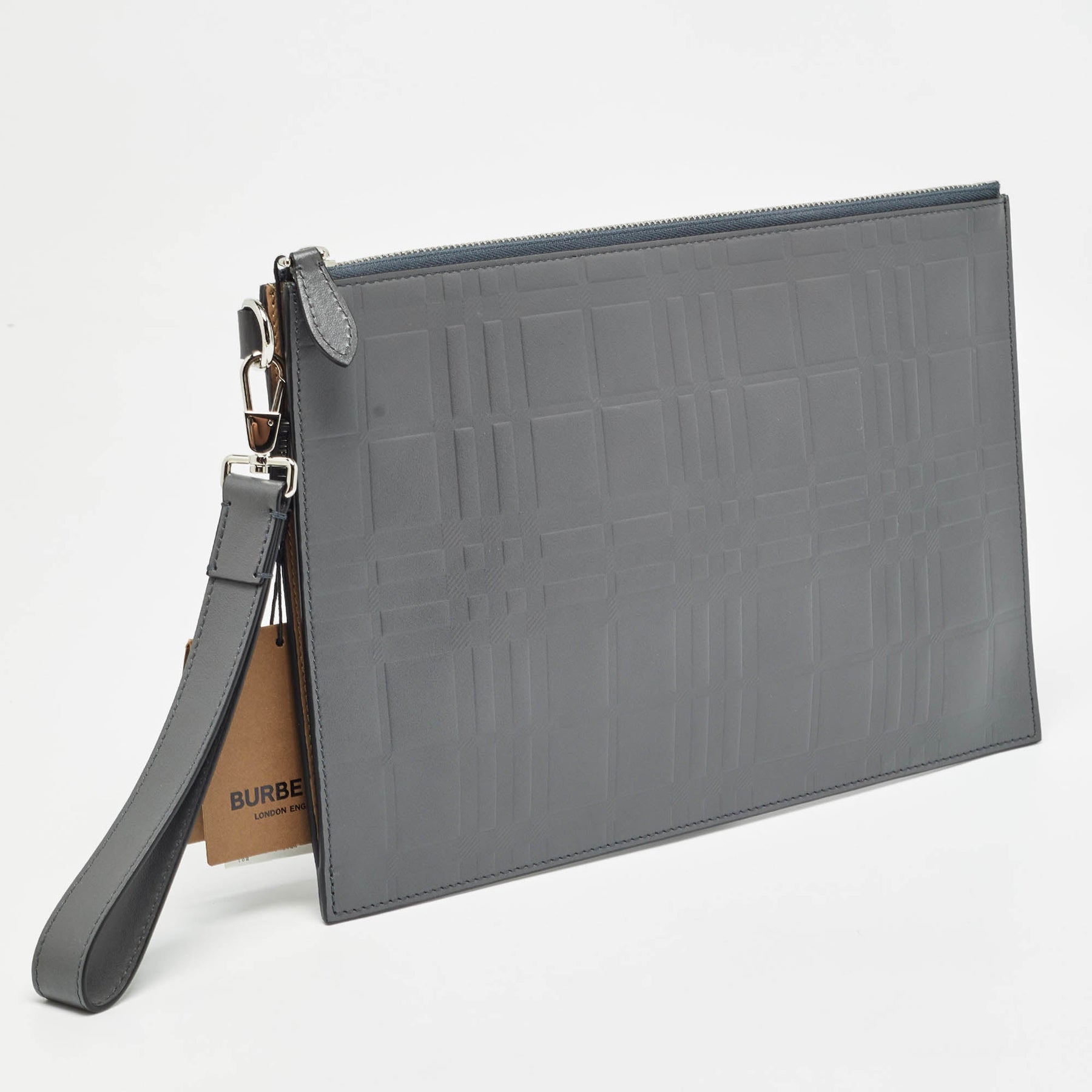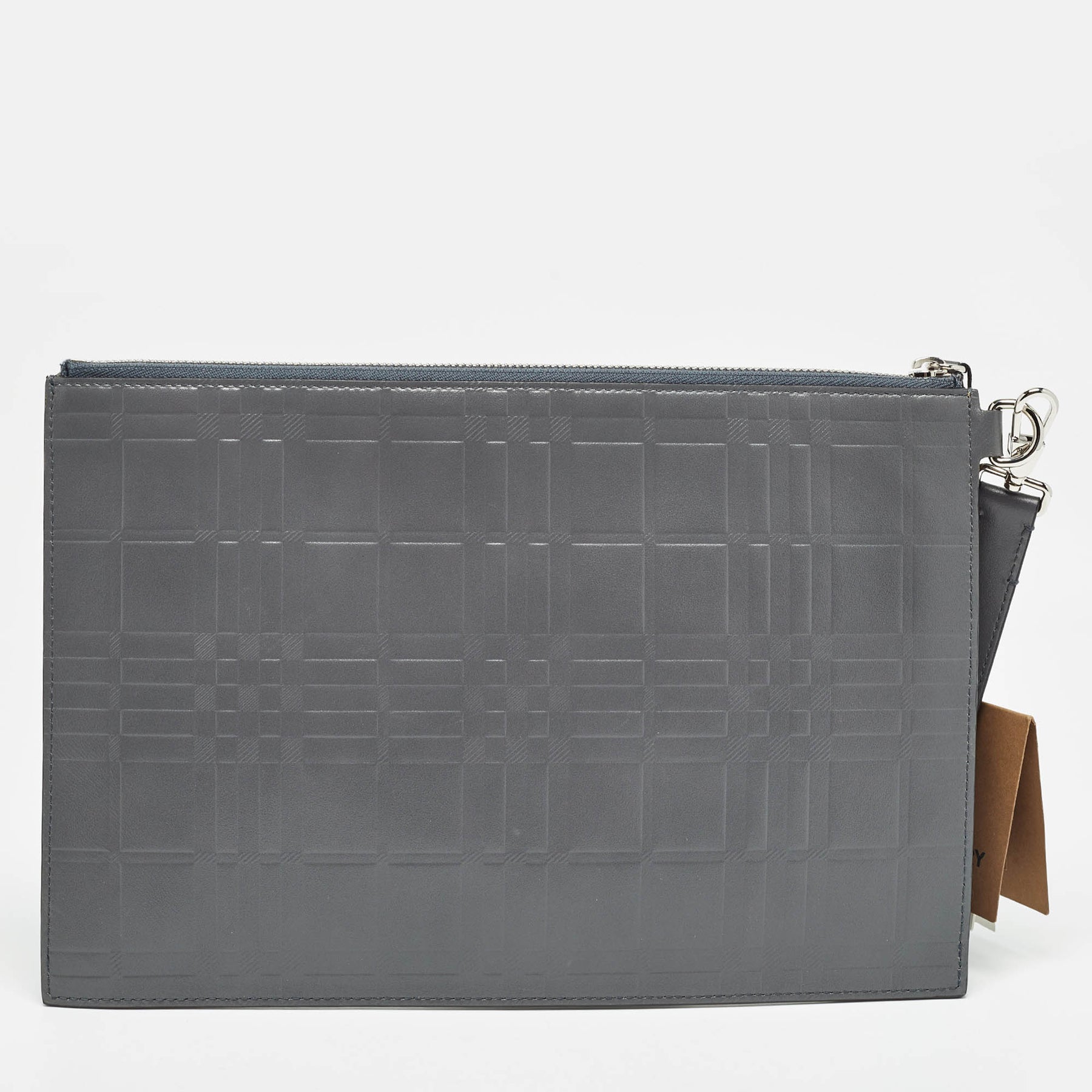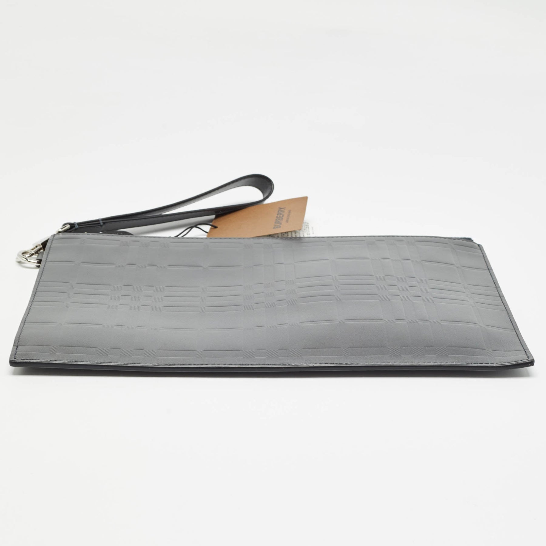 BURBERRY Grey Check Embossed Leather Edin Zip Pouch