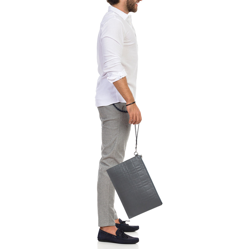 Give your essentials a stylish home with this pouch from the house of Burberry. Made from leather, this pouch is a long lasting accessory. The silver tone zipper, the wristlet, and the lined interior make it a worthy purchase.